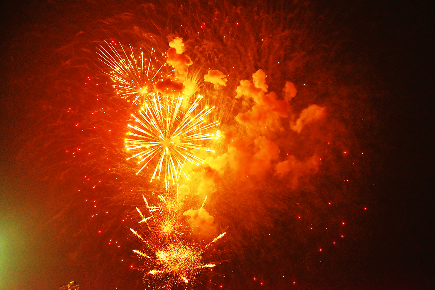 အကြိုဂုဏ်ပြုညစာစားပွဲ စတင်ကျင်းပချိန်တွင် နှစ် (၈၀) ပြည့် တပ်မတော်နေ့ကို ကြိုဆိုဂုဏ်ပြုသည့် အထိမ်းအမှတ်အဖြစ် တပ်မတော်နေ့စစ်ရေးပြကွင်းနှင့် ဘုရင့်နောင်ရိပ်သာတို့မှ မီးရှူးမီးပန်းများ ပစ်ဖောက်ကြသည်။