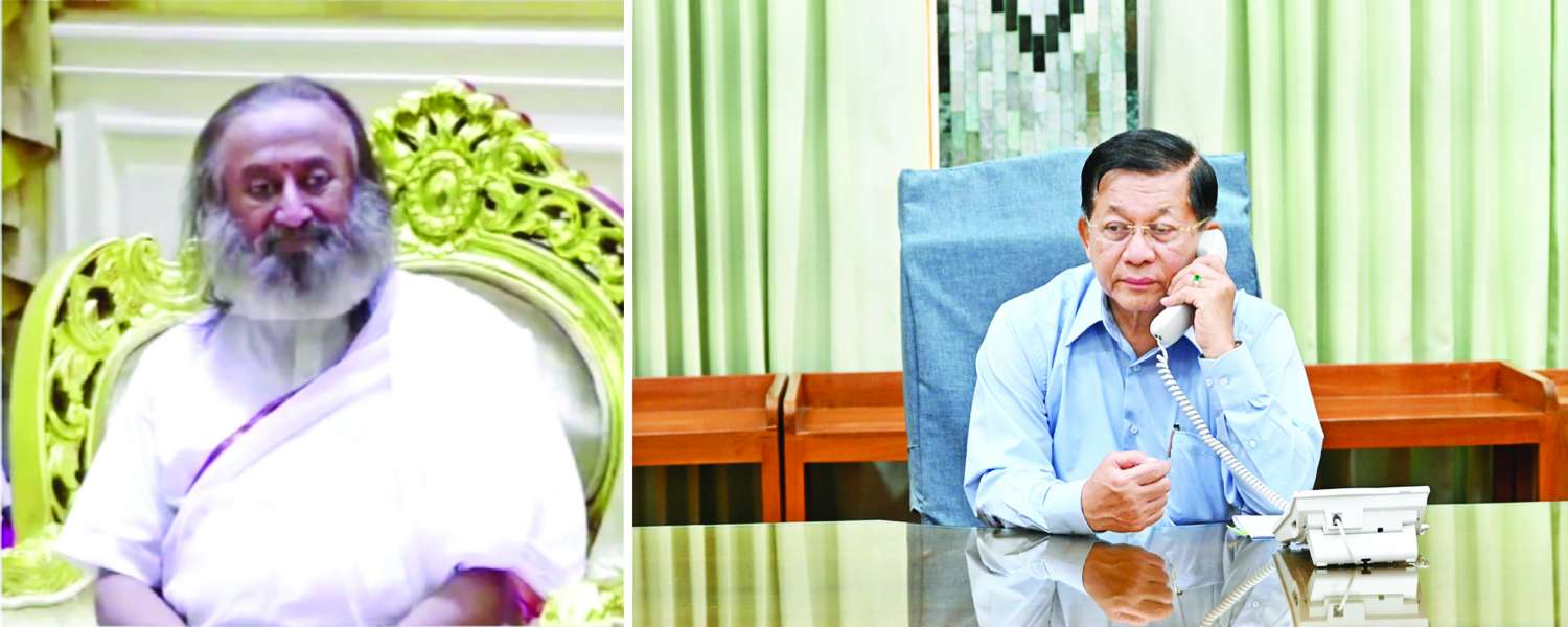 မြန်မာနိုင်ငံတွင် မန္တလေးငလျင်ကြီးလှုပ်ခတ်ခဲ့မှုကြောင့် ထိခိုက်ပျက်ဆီးမှုများဖြစ်ပေါ်ခဲ့မှုများနှင့် မြန်မာနိုင်ငံ၏ ပြည်တွင်းငြိမ်းချမ်းရေးနှင့်ပတ်သက်၍ နိုင်ငံတော်စီမံအုပ်ချုပ်ရေးကောင်စီဥက္ကဋ္ဌ နိုင်ငံတော်ဝန်ကြီးချုပ် ဗိုလ်ချုပ်မှူးကြီး မင်းအောင်လှိုင်သည် ယနေ့နံနက်ပိုင်းတွင် အိန္ဒိယနိုင်ငံမှ လူသားချင်းစာနာထောက်ထားမှုခေါင်းဆောင်နှင့် ငြိမ်းချမ်းရေးသံတမန် Gurudev Sri Sri Ravi Shankar နှင့် ဖုန်းဖြင့်ဆက်သွယ်ပြောကြားသည်။