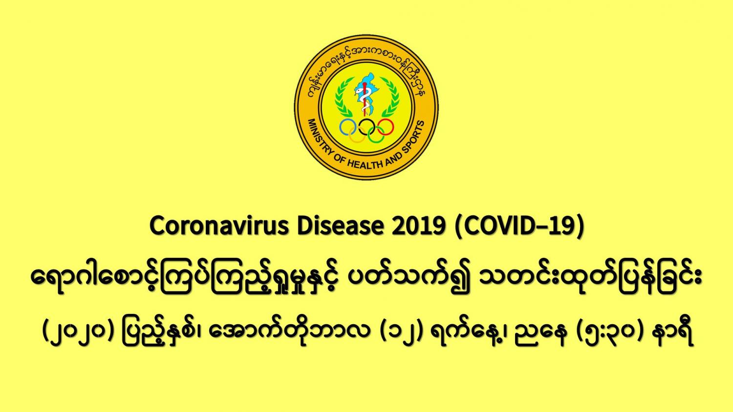 COVID-19 ရောဂါစောင့်ကြပ်ကြည့်ရှုမှုနှင့်ပတ်သက်၍ သတင်းထုတ်ပြန်ခြင်း 10/12/2020 (၁၂-၁၀-၂၀၂၀) ရက်နေ့၊ ညနေ (၅:၃၀)နာရီ (၁၁-၁၀-၂၀၂၀) ရက်နေ့ဓာတ်ခွဲစစ်ဆေးမှုများတွင် တွေ့ရှိခဲ့သော ဓာတ်ခွဲအတည်ပြုလူနာ (၁,၉၀၆) ဦး၏ မြို့နယ်အလိုက် တွေ့ရှိရမှုအခြေအနေမှာ အောက်ပါအတိုင်း ဖြစ်ပါသည်။ #Ministry of Health and Sports, Myanmar
