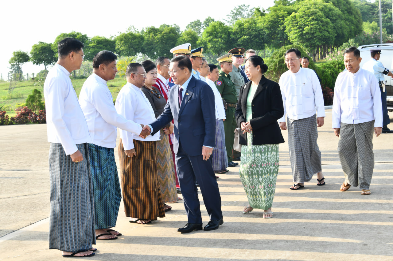 နိုင်ငံတော်စီမံအုပ်ချုပ်ရေးကောင်စီဥက္ကဋ္ဌ နိုင်ငံတော်ဝန်ကြီးချုပ်နှင့် ဇနီး ဦးဆောင်သည့် မြန်မာအဆင့်မြင့် ကိုယ်စားလှယ်အဖွဲ့အား ကောင်စီဒုတိယဥက္ကဋ္ဌ ဒုတိယဝန်ကြီးချုပ် ဒုတိယဗိုလ်ချုပ်မှူးကြီး စိုးဝင်းနှင့် ဇနီး ဒေါ်သန်းသန်းနွယ်၊ ကောင်စီအတွင်းရေးမှူး ဗိုလ်ချုပ်ကြီး အောင်လင်းဒွေးနှင့် ဇနီး၊ ကောင်စီအဖွဲ့ဝင်များ၊ ပြည်ထောင်စုဝန်ကြီးများ၊ နေပြည်တော်ကောင်စီဥက္ကဋ္ဌ၊ ကာကွယ်ရေးဦးစီးချုပ်ရုံးမှ အဆင့်မြင့်တပ်မတော်အရာရှိကြီးများနှင့် ဇနီးများ၊ နေပြည်တော်တိုင်းစစ်ဌာနချုပ်တိုင်းမှူး၊ မြန်မာနိုင်ငံဆိုင်ရာ ရုရှားဖက်ဒရေးရှင်းနိုင်ငံသံရုံး၊ စစ်သံရုံးတို့မှ တာဝန်ရှိသူများက လေဆိပ်၌ ပို့ဆောင်နှုတ်ဆက်ကြသည်။