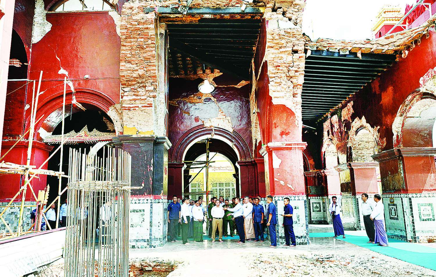 ဆက်လက်ပြီး နိုင်ငံတော်စီမံအုပ်ချုပ်ရေးကောင်စီဥက္ကဋ္ဌ နိုင်ငံတော်ဝန်ကြီးချုပ်နှင့် အဖွဲ့ဝင်များသည် မဟာမြတ်မုနိဘုရားကြီးနှင့် သာသနိကအဆောက်အဦများ ငလျင်ဒဏ်ကြောင့် ထိခိုက်ပျက်စီးခဲ့ရမှုများနှင့် ပြန်လည်ပြုပြင်တည်ဆောက်လျက်ရှိသည့်အခြေအနေများကို လိုက်လံကြည့်ရှုစစ်ဆေးပြီး တာဝန်ရှိသူများ၏ တင်ပြချက်များအပေါ် လိုအပ်သည်များ လမ်းညွှန်မှာကြားသည်။