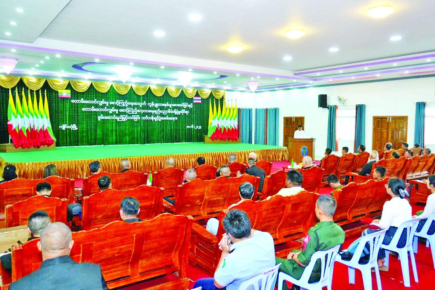တောမီးလောင်ကျွမ်းမှု စောင့်ကြည့်ရေး ကွန်ပျူတာစနစ်ပေးအပ်ခြင်းနှင့် တောမီးလောင်ကျွမ်းမှု စောင့်ကြည့်လေ့လာရေး နည်းပညာစီမံခန့်ခွဲမှုဆိုင်ရာ စွမ်းဆောင်ရည်မြှင့်တင်ခြင်း သင်တန်း ဖွင့်ပွဲကို ယနေ့နံနက်ပိုင်းတွင် ရှမ်းပြည်နယ် (အရှေ့ပိုင်း) ကျိုင်းတုံမြို့ အမှတ်(၁)ရပ်ကွက်ရှိ မြို့နယ်စည်ပင် သာယာရေးရုံး သုံးထပ်ခန်းမဆောင်၌ ကျင်းပရာ တြိဂံဒေသတိုင်းစစ်ဌာနချုပ်တိုင်းမှူး ဗိုလ်မှူးချုပ်စိုးလှိုင်နှင့် တာဝန်ရှိသူများ၊ သယံဇာတနှင့် သဘာဝပတ်ဝန်းကျင်ထိန်းသိမ်းရေးဝန်ကြီးဌာန ပတ်ဝန်းကျင်ထိန်းသိမ်းရေးဦးစီးဌာနမှ ဒုတိယညွှန်ကြားရေးမှူးချုပ် ဒေါက်တာဆန်းဦး၊ ထိုင်းနိုင်ငံ ထိုင်းဘုရင့် တပ်မတော်ကာကွယ်ရေးဦးစီးချုပ်ရုံး၊ နယ်စပ်ဒေသနှင့် အိမ်နီးချင်းနိုင်ငံများရေးရာရုံး၊ နယ်စပ်ရေးရာဌာန ညွှန်ကြားရေးမှူး တီရာပန်ထရီပီပတ်ပါ ကိုယ်စားလှယ်အဖွဲ့ဝင်များ၊ ဌာနဆိုင်ရာတာဝန်ရှိသူများ၊ ဖိတ်ကြားထားသည့် ဧည့်သည်တော်များနှင့် သင်တန်းသားများ တက်ရောက်ကြသည်။