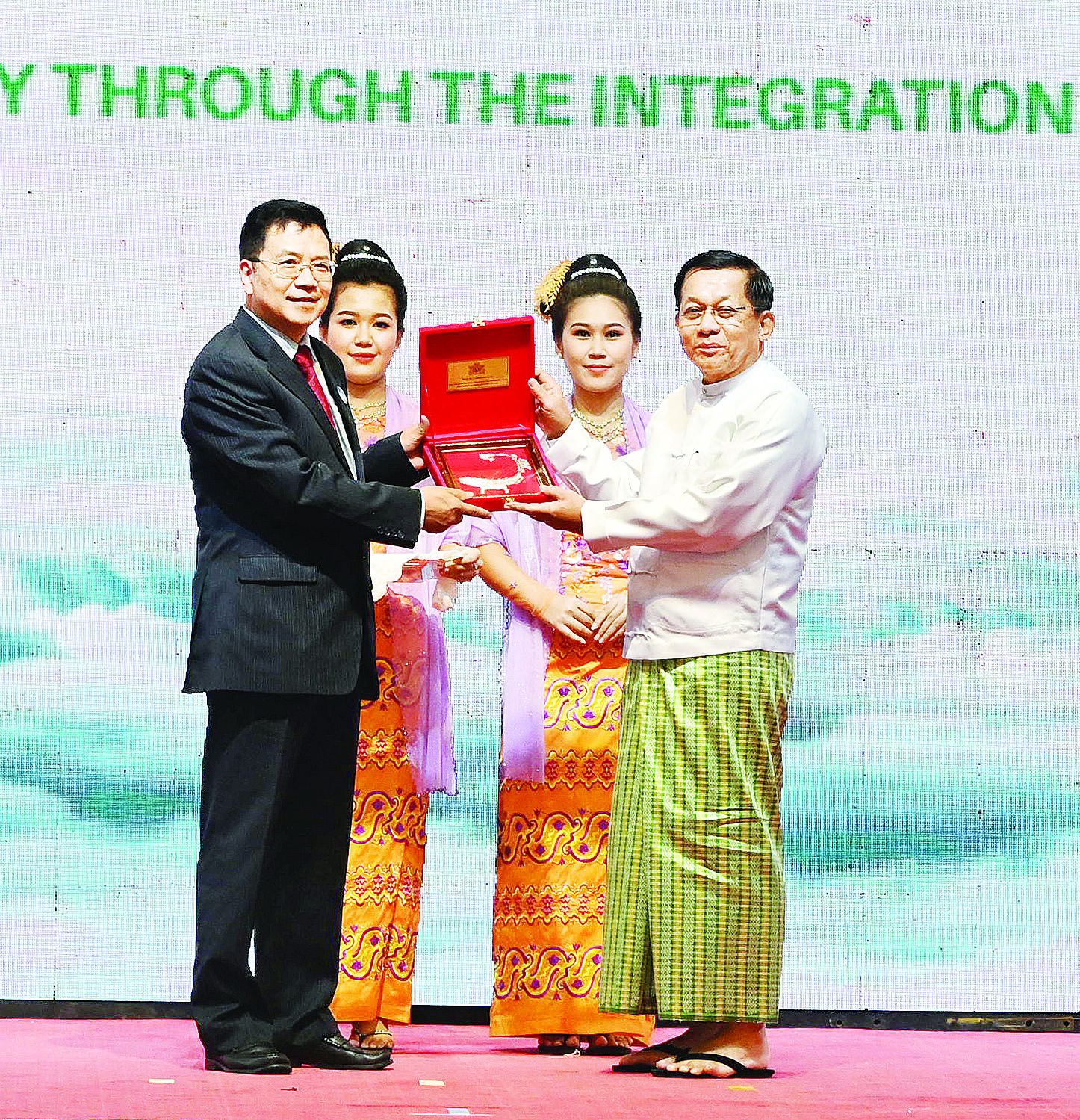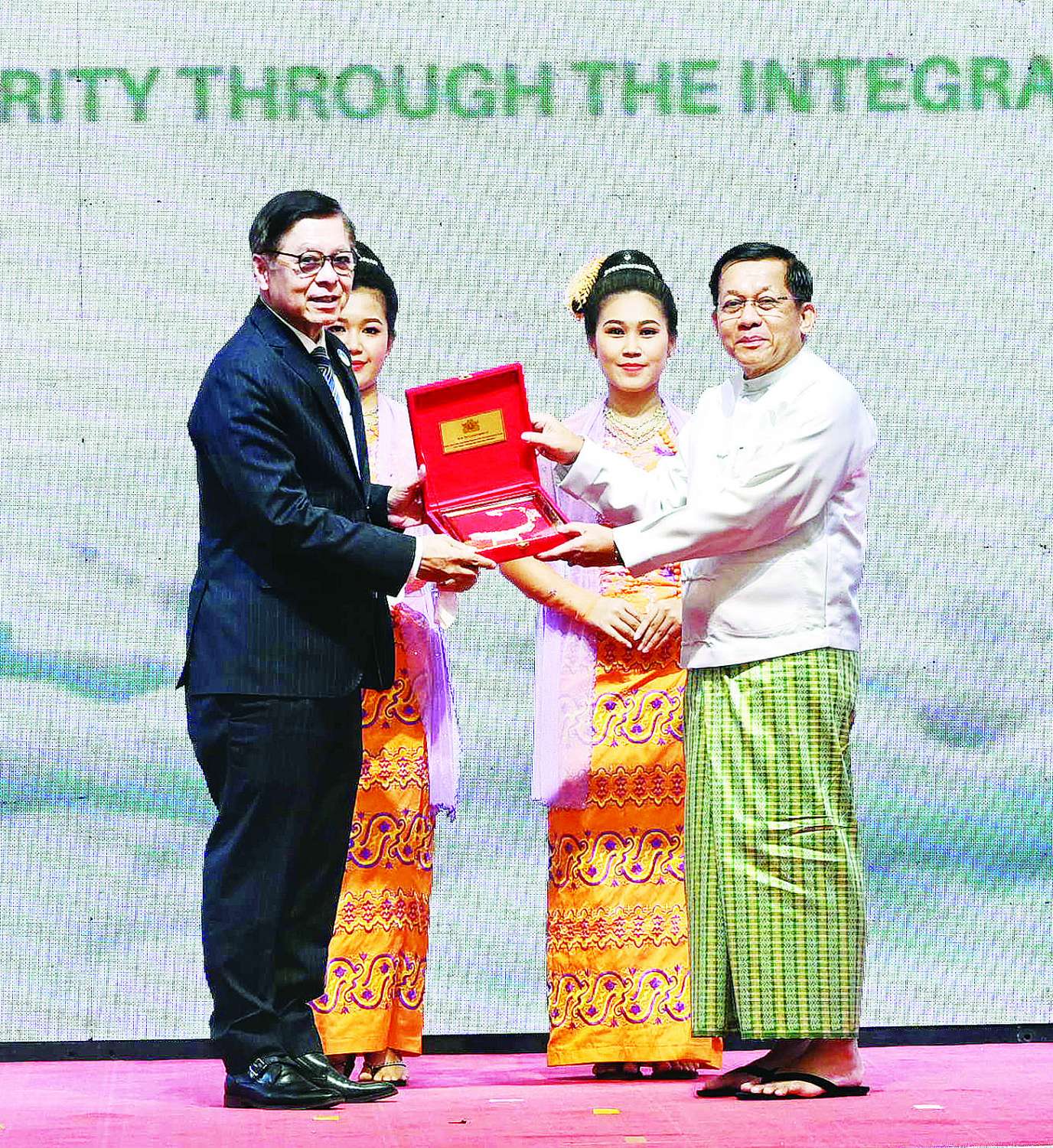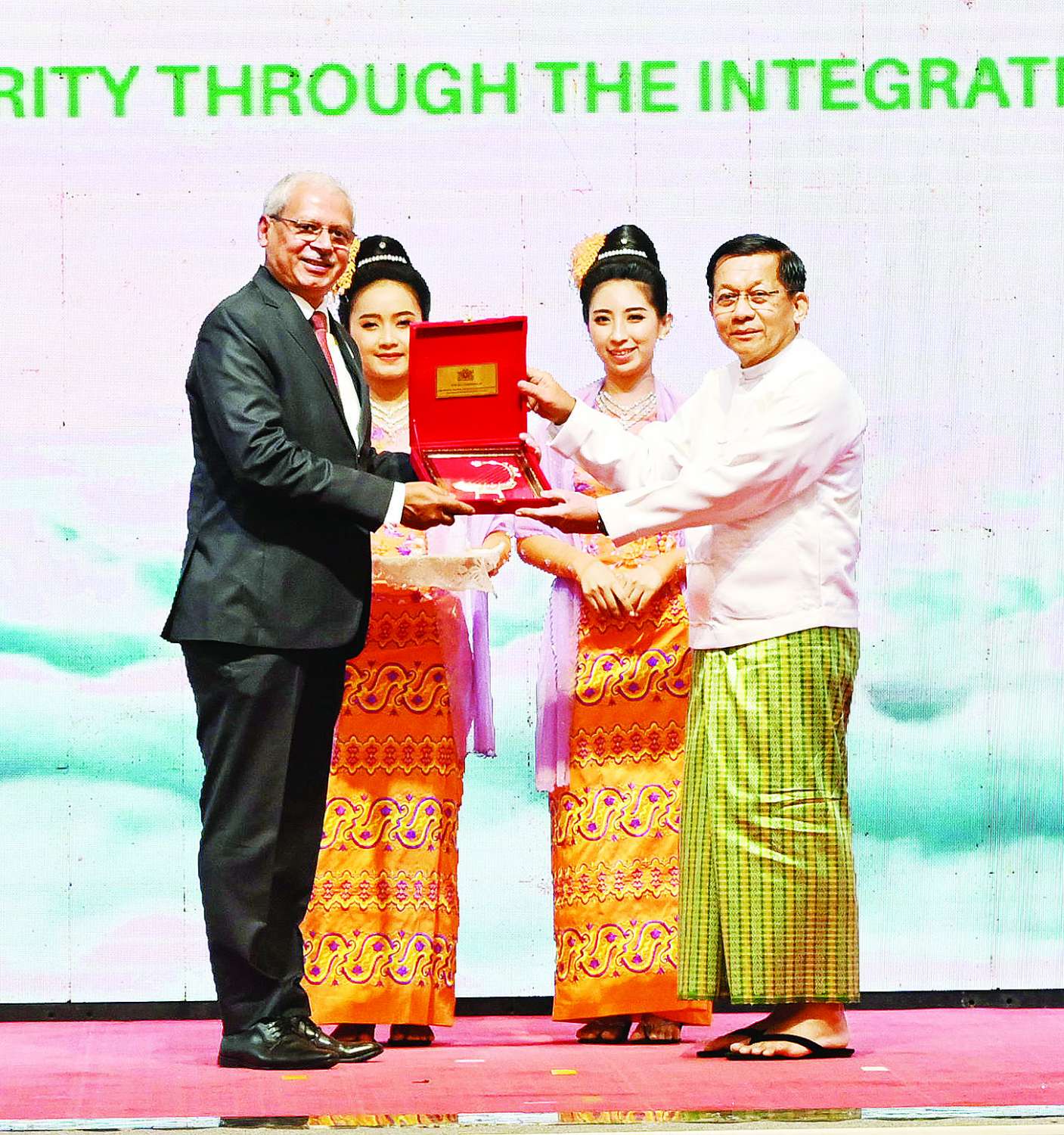 ထို့နောက် နိုင်ငံတော်စီမံအုပ်ချုပ်ရေးကောင်စီဥက္ကဋ္ဌ နိုင်ငံတော်ဝန်ကြီးချုပ် အမျိုးသားစည်းလုံးညီညွတ်ရေးနှင့် ငြိမ်းချမ်းရေးဖော်ဆောင်မှု ဗဟိုကော်မတီဥက္ကဋ္ဌက ငြိမ်းချမ်းရေးဖိုရမ်တွင် ပါဝင်ဆွေးနွေးသည့် ပြည်ပဧည့်သည်တော်ပညာရှင်များအား တစ်ဦးချင်းအမှတ်တရလက်ဆောင်ပစ္စည်းများပေးအပ်ပြီး အခမ်းအနားတက်ရောက် လာကြသူများနှင့်အတူ “စစ်မီးလည်းငြိမ်း မြက်ခင်းစိမ်း၍ ငြိမ်းချမ်းတေးများ ချိုလွင်စေ” ဟူသည့် ငြိမ်းချမ်းရေးကြိုးပမ်းမှု Video Clip ကို ကြည့်ရှုကြသည်။