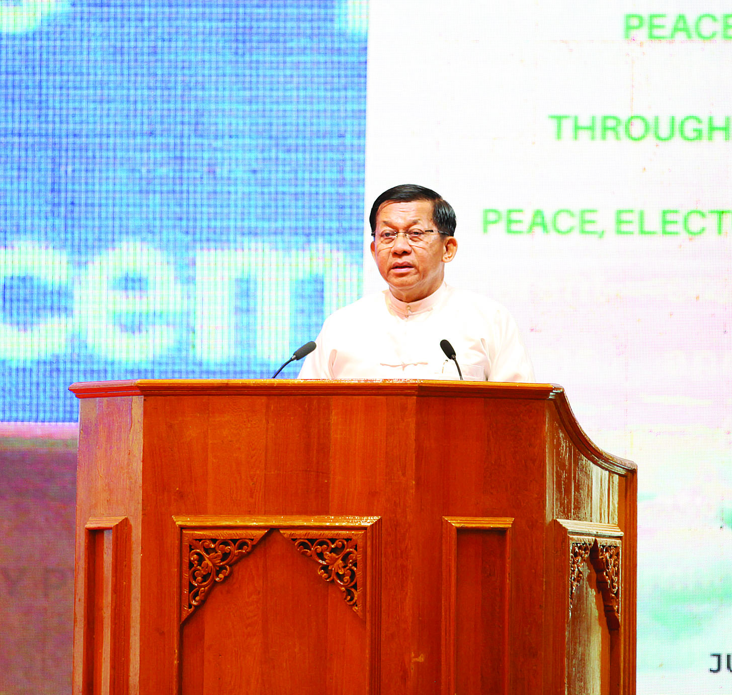 ကျွန်တော်တို့အနေနဲ့ ငြိမ်းချမ်းရေးဖော်ဆောင်ရာမှာ ၂၀၀၈ ခုနှစ် ဖွဲ့စည်းပုံအခြေခံဥပဒေနဲ့ တစ်နိုင်ငံလုံးပစ်ခတ်တိုက်ခိုက်မှုရပ်စဲရေး သဘောတူစာချုပ်(NCA)လမ်းကြောင်းကို အဓိကကိုင်စွဲပြီး လျှောက်လှမ်းလျက်ရှိပါတယ်။ ငြိမ်းချမ်းရေးဖော်ဆောင်ရာမှာလည်း ပြည်ပစွက်ဖက်မှုမရှိဖို့လိုသလို ပြည်တွင်းက အဖျက်အမှောင့် ပယောဂတွေ ကင်းကင်းရှင်းရှင်းနဲ့ လုပ်ဆောင်နိုင်ဖို့လည်းလိုပါတယ်။ တိုင်းရင်းသားညီအစ်ကိုအချင်းချင်း ပြည်ထောင်စုစိတ်ဓာတ်အရင်းခံပြီး နိုင်ငံရေးနည်းလမ်းအရ တွေ့ဆုံဆွေးနွေးအဖြေရှာနိုင်မှသာ စစ်မှန်ပြီးရေရှည်တည်တံ့တဲ့ ငြိမ်းချမ်းရေးရရှိ အောင်မြင်နိုင်မယ်လို့ ကျွန်တော့်အနေနဲ့ အပြည့်အဝ ယုံကြည်ထားပါတယ်။