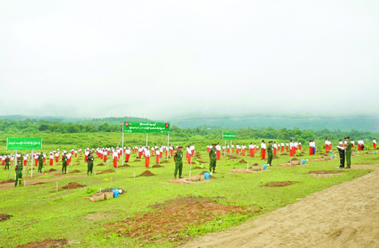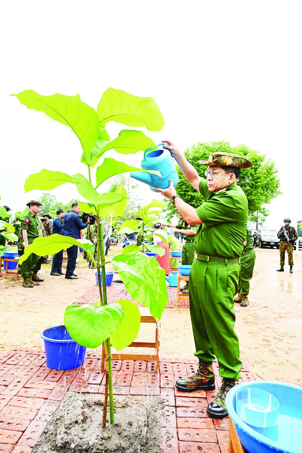 ဦးစွာ နိုင်ငံတော်စီမံအုပ်ချုပ်ရေးကောင်စီဥက္ကဋ္ဌ တပ်မတော်ကာကွယ်ရေးဦးစီးချုပ်နှင့် ဇနီးတို့က ရတနာတန်းဝင်ကျွန်းပင်ကို ဦးဆောင်စိုက်ပျိုးပေးကြသည်။ ဆက်လက်ပြီး နိုင်ငံတော်စီမံအုပ်ချုပ်ရေးကောင်စီဒုတိယဥက္ကဋ္ဌ ဒုတိယတပ်မတော်ကာကွယ်ရေးဦးစီးချုပ် ကာကွယ်ရေးဦးစီးချုပ်(ကြည်း)နှင့် ဇနီး၊ ညှိနှိုင်းကွပ်ကဲရေးမှူး (ကြည်း၊ ရေ၊ လေ)နှင့်ဇနီး၊ ကာကွယ်ရေးဦးစီးချုပ်(ရေ)နှင့်ဇနီး၊ ကာကွယ်ရေးဦးစီးချုပ်(လေ)နှင့်ဇနီး၊ ကာကွယ်ရေးဦးစီးချုပ်ရုံးမှ တပ်မတော်အရာရှိကြီးများနှင့် ဇနီးများ၊ အခမ်းအနားတက်ရောက်လာကြသည့် အရာရှိ၊ စစ်သည်မိသားစုများက သတ်မှတ်နေရာအသီးသီးတွင် သစ်ပင်များကို စိုက်ပျိုးကြသည်။ ထို့နောက် နိုင်ငံတော်စီမံအုပ်ချုပ်ရေးကောင်စီဥက္ကဋ္ဌ တပ်မတော်ကာကွယ်ရေးဦးစီးချုပ်နှင့် ဇနီး၊ အဖွဲ့ဝင်များသည် အရာရှိ၊ စစ်သည်မိသားစုများ၏ စုပေါင်းသစ်ပင်စိုက်ပျိုးနေမှုအား လှည့်လည်ကြည့်ရှုအားပေးကြသည်။