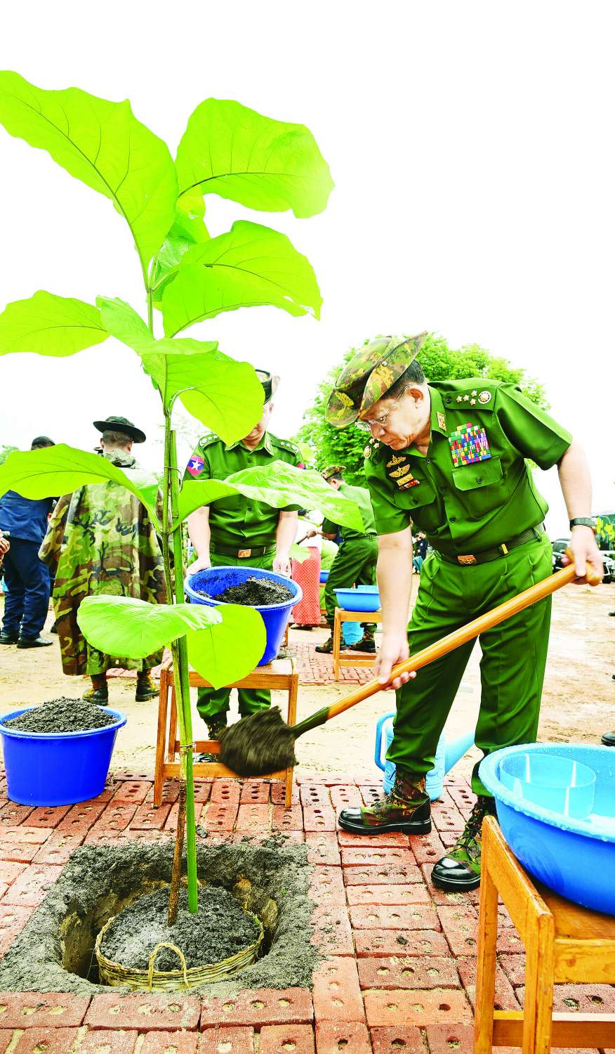သဘာဝပတ်ဝန်းကျင်အား ထိန်းသိမ်းနိုင်စေရန်နှင့် ရာသီဥတုကိုအထောက်အကူဖြစ်စေရန်၊ အရိပ်အာဝါသရရှိစေရန်၊ နိုင်ငံ့စီးပွားရေးအတွက် တစ်ဖက်တစ်လမ်းမှ အထောက်အကူ ဖြစ်စေရန်ရည်ရွယ်၍ ကာကွယ်ရေးဦးစီးချုပ်ရုံး (ကြည်း၊ ရေ၊ လေ) မိသားစုများနှင့် တိုင်းစစ်ဌာနချုပ်အသီးသီးတို့တွင် ၂၀၁၁ ခုနှစ်မှစ၍ နှစ်စဉ် မိုးရာသီ တစ်အုပ်တစ်မ သစ်ပင်စိုက်ပျိုးပွဲများ ကျင်းပပြုလုပ်လျက်ရှိသည်။