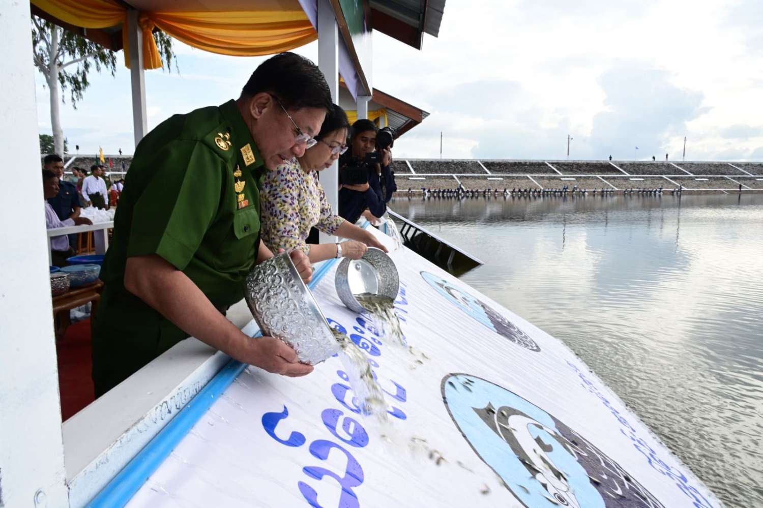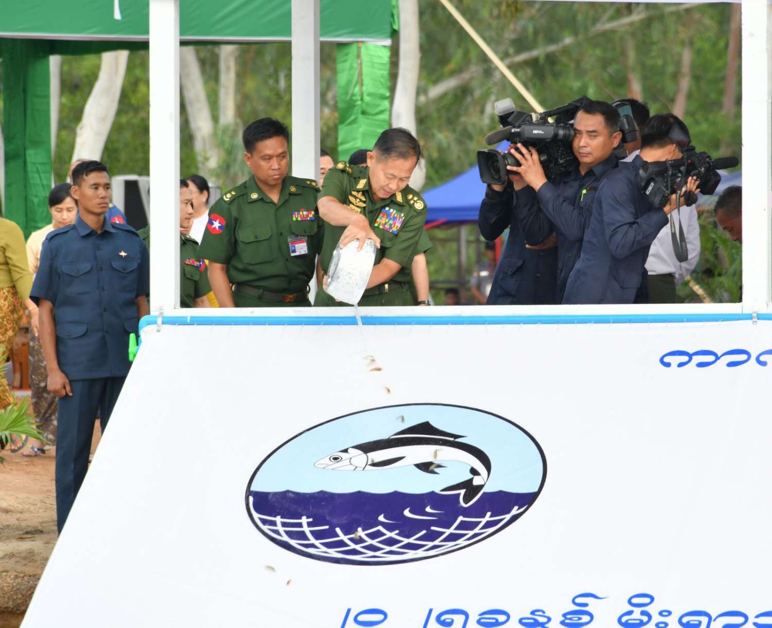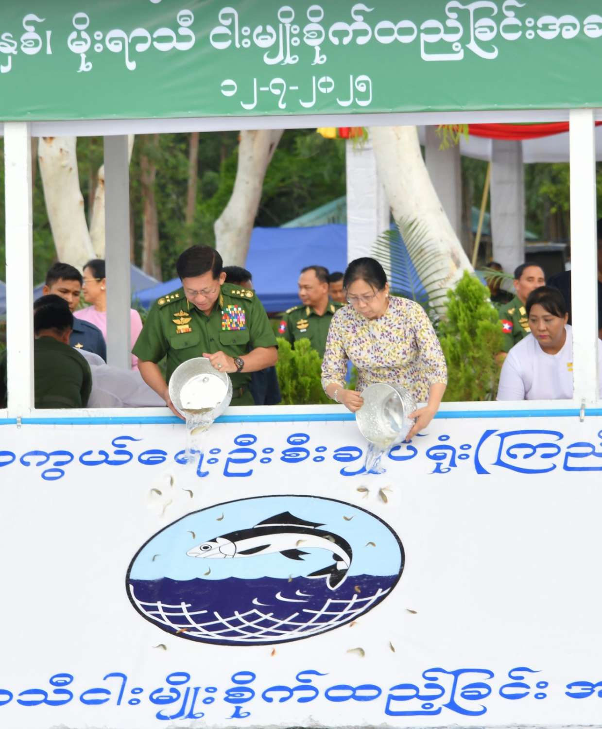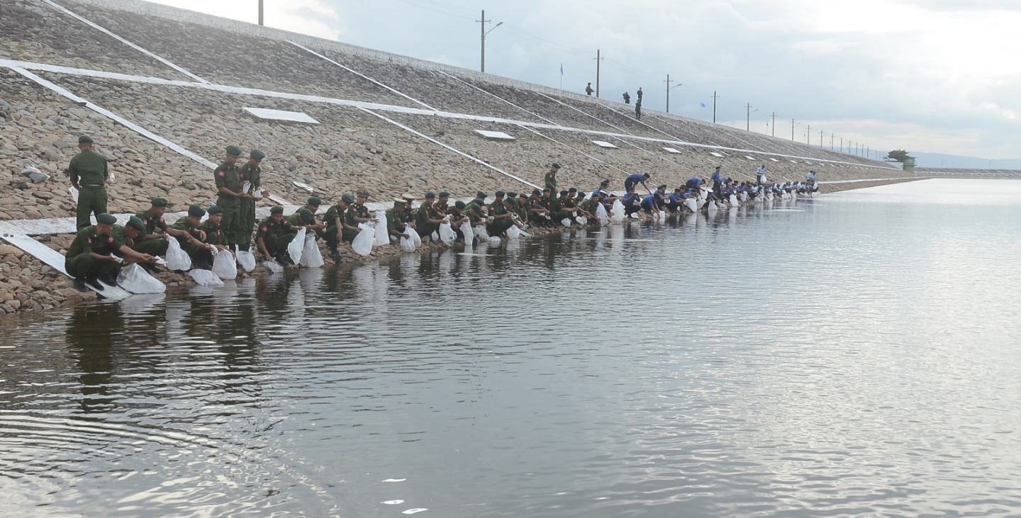 ဦးစွာ နိုင်ငံတော်စီမံအုပ်ချုပ်ရေးကောင်စီဥက္ကဋ္ဌ တပ်မတော်ကာကွယ်ရေးဦးစီးချုပ်နှင့် ဇနီးတို့က ရေဆင်းဆည်အတွင်းသို့ ငါးမျိုးများအား ဦးဆောင်စိုက်ထည့်ပေးကြသည်။ ဆက်လက်ပြီး နိုင်ငံတော်စီမံအုပ်ချုပ်ရေးကောင်စီဒုတိယဥက္ကဋ္ဌ ဒုတိယတပ်မတော်ကာကွယ်ရေးဦးစီးချုပ် ကာကွယ်ရေးဦးစီးချုပ်(ကြည်း)၊ ညှိနှိုင်းကွပ်ကဲရေးမှူး (ကြည်း၊ ရေ၊ လေ)နှင့်ဇနီး၊ ကာကွယ်ရေးဦးစီးချုပ်(ရေ)နှင့်ဇနီး၊ ကာကွယ်ရေးဦးစီးချုပ်(လေ)နှင့်ဇနီး၊ ကာကွယ်ရေးဦးစီးချုပ်ရုံးမှ တပ်မတော်အရာရှိကြီးများနှင့်ဇနီးများ၊ အခမ်းအနားတက်ရောက်လာကြသည့် အရာရှိ၊ စစ်သည် မိသားစုများက ငါးမျိုးများကို ရေဆင်းဆည်အတွင်းစိုက်ထည့်ပေးကြသည်။ ထို့နောက် နိုင်ငံတော်စီမံအုပ်ချုပ်ရေးကောင်စီဥက္ကဋ္ဌ တပ်မတော်ကာကွယ်ရေးဦးစီးချုပ်နှင့် ဇနီး၊ အဖွဲ့ဝင်များသည် အရာရှိ၊ စစ်သည်မိသားစုများ၏ ငါးမျိုးစိုက်ထည့်ပေးနေမှုအား လိုက်လံကြည့်ရှုအားပေးကြသည်။