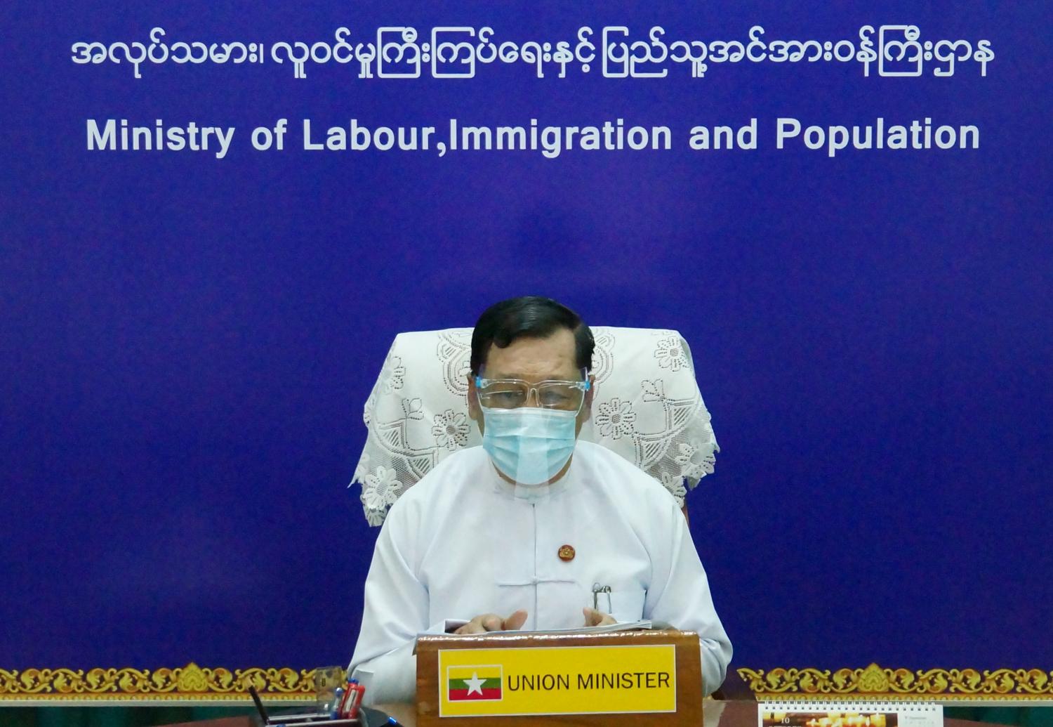 ကိုဗစ်-၁၉ ကပ်ရောဂါ ကာလအတွင်း စက်ရုံ/အလုပ်ရုံများ ဖွင့်လှစ်ဆောင်ရွက်နေမှု အခြေအနေများ၊ လူမှုဖူလုံရေးအကျုံးဝင် စက်ရုံ၊ အလုပ်ရုံ၊ လုပ်ငန်းဌာနများရှိ အလုပ်သမားများ၊ ဝန်ထမ်းများအား လူမှုဖူလုံရေးထောက်ပံ့ငွေများ ဆက်လက်ခွင့်ပြု ထုတ်ပေးနေသည့် အခြေအနေများနှင့် ပတ်သက်၍ အလုပ်သမားအဖွဲ့အစည်းများမှ ကိုယ်စားလှယ်များနှင့် ညှိနှိုင်းအစည်းအဝေးကို ယနေ့မွန်းလွဲ ၂ နာရီတွင် ဗီဒီယိုကွန်ဖရင့်စနစ်ဖြင့် ကျင်းပသည်။