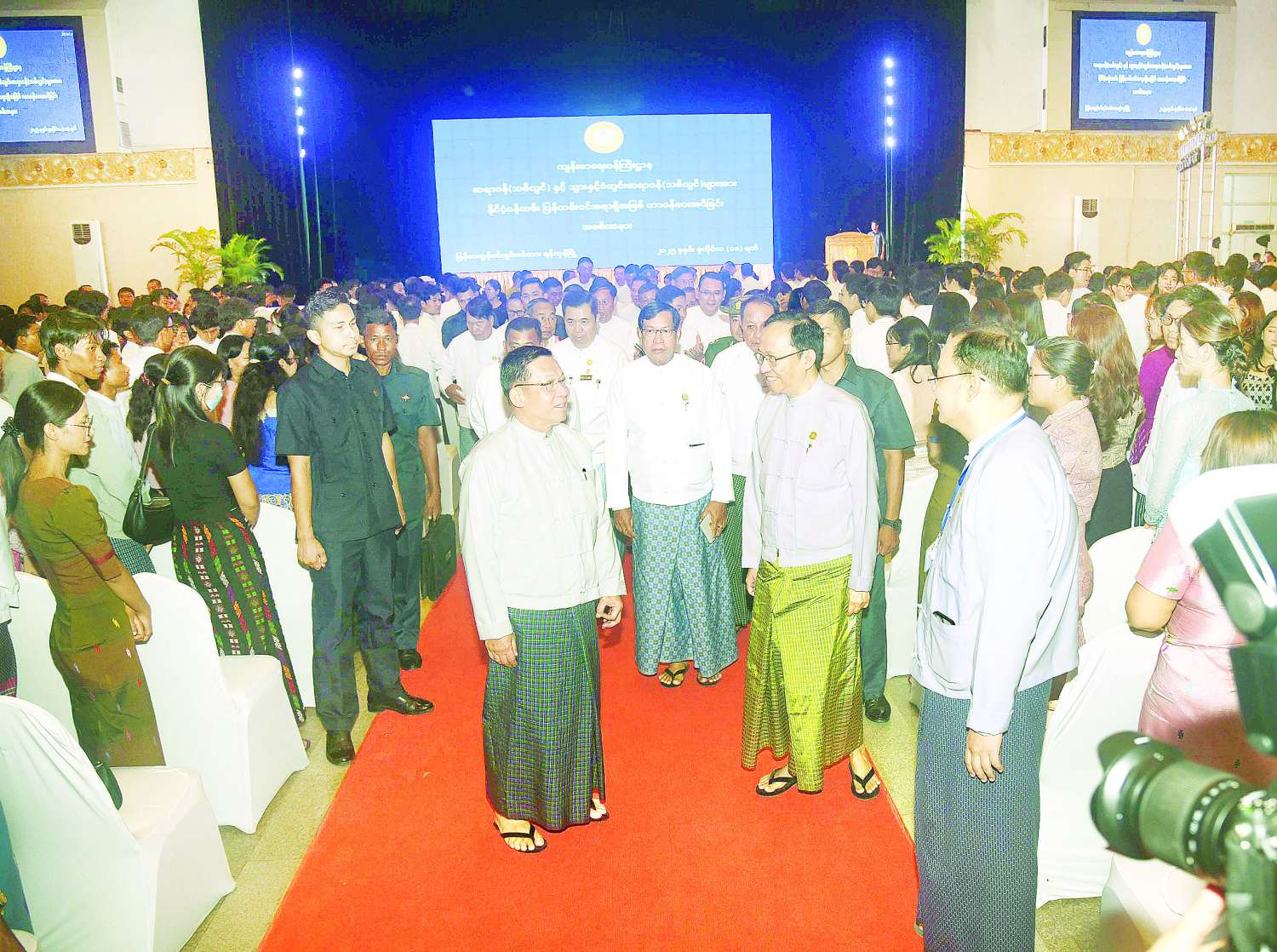 ထို့နောက် ကောင်စီတွဲဖက်အတွင်းရေးမှူးက ဆေးတက္ကသိုလ်နှစ်ခုနှင့် သွားဘက်ဆိုင်ရာဆေးတက္ကသိုလ်တို့မှ ကိုယ်စားလှယ်များအား နိုင်ငံ့ဝန်ထမ်းပြန်တမ်းဝင် အရာရှိခန့်လွှာများ ပေးအပ်ရာ တက္ကသိုလ်တစ်ခုချင်းစီလိုက် ကိုယ်စားလှယ်များက လက်ခံရယူကြသည်။