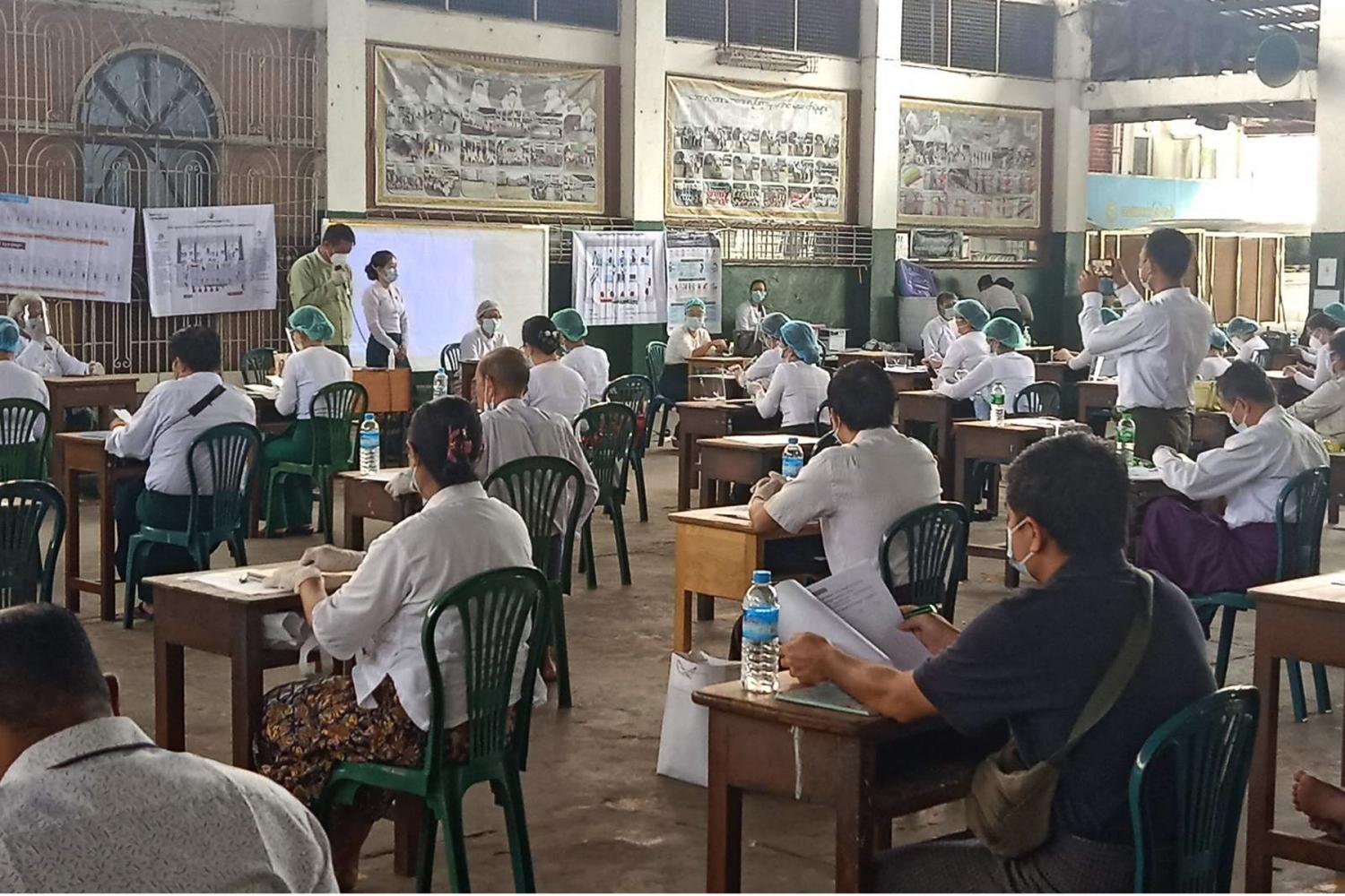 ၂၀၂၀ပြည့်နှစ်၊ နိုဝင်ဘာလ()ရက်နေ့တွင် ကျင်းပပြုလုပ်မည့် ပါတီစုံဒီမိုကရေစီ အထွေထွေရွေး ကောက်ပွဲ၌ မဲရုံအသီးသီးတာဝန်ထမ်းဆောင်ကြမည့် မဲရုံးမှူး၊ ဒုတိယမဲရုံမှူးနှင့် မဲရုံအဖွဲ့ဝင်များအားရွေး ကောက်ပွဲဆိုင်ရာ အသိပညာပေးသင်တန်းကို ရန်ကုန်တိုင်းဒေသကြီး၊ဒဂုံမြို့နယ်အမှတ်() အခြေခံပညာ အထက်တန်းကျောင်း၌ ယမန်နေ့နံနက်၁၀နာရီက ဖွင့်လှစ် ပို့ချပေးကြောင်းသိရသည်။