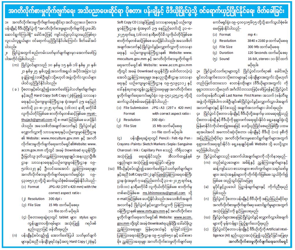 အဂတိလိုက်စားမှုတိုက်ဖျက်ရေး အသိပညာပေးဆိုင်ရာ ပိုစတာ၊ ပန်းချီနှင့် ဗီဒီယိုပြိုင်ပွဲသို့ ဝင်ရောက်ယှဉ်ပြိုင်နိုင်ရေး ဖိတ်ခေါ်ခြင်း