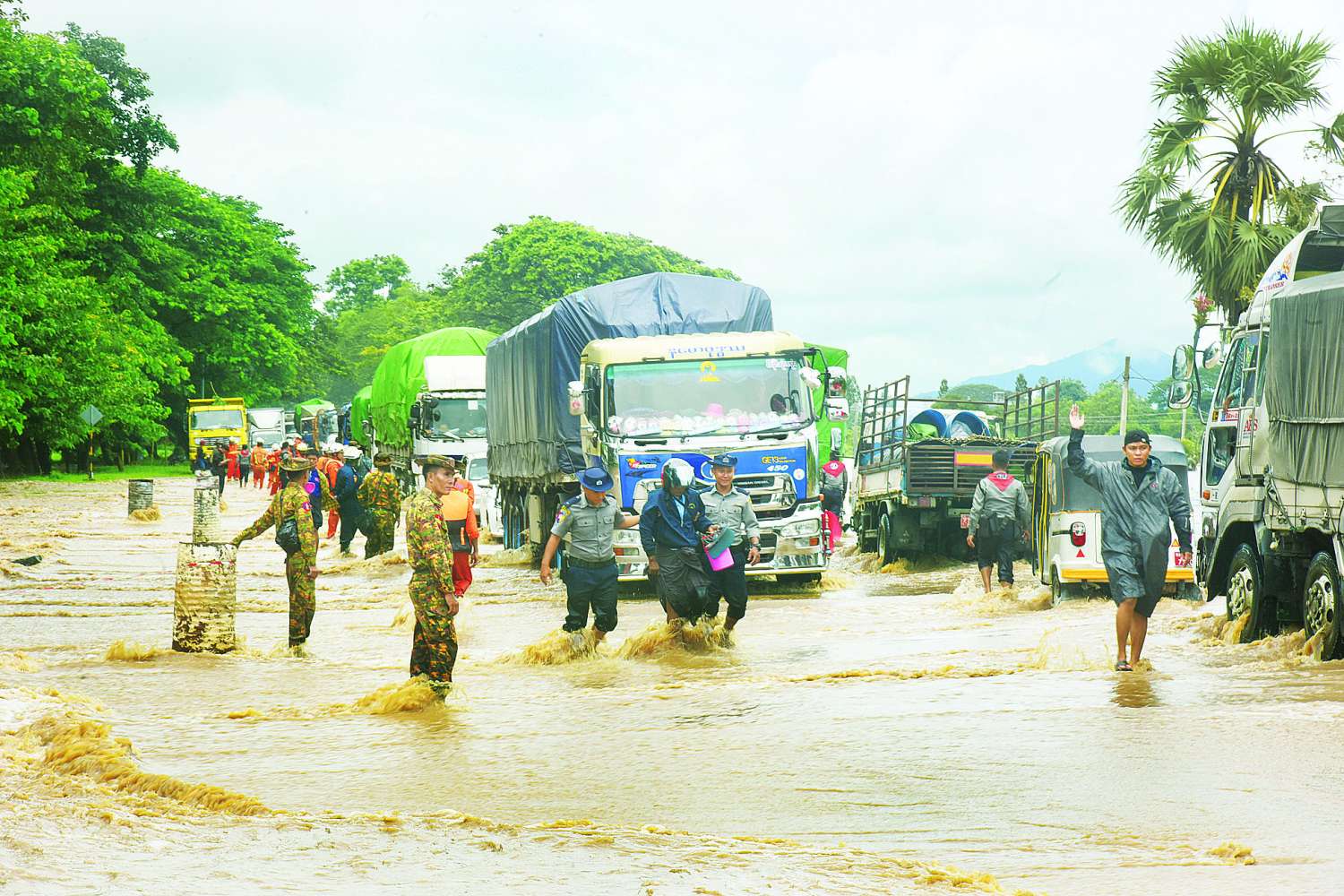ထိုသို့ဖြစ်ပေါ်လျက်ရှိရာ ပြည်ထောင်စုနယ်မြေနေပြည်တော်ရှိ ဇေယျာသီရိမြို့နယ်၊ ရန်ကုန်-မန္တလေး ကားလမ်းဟောင်း၊ ပင်လောင်းလမ်းဆုံအနီး ကားလမ်းမပေါ်နှင့် ပျဉ်းမနားမြို့နယ် ကြို့တန်းကျေးရွာ၊ အင်းသာကျေးရွာ၊ သာယာစုကျေးရွာတို့၌ ရေကြီးရေလျှံမှုများနှင့်ရေကျော်မှုများ ဖြစ်ပေါ်လျက်ရှိသည့်အတွက် နယ်မြေခံတပ်မတော်သားများ၊ မြန်မာနိုင်ငံရဲတပ်ဖွဲ့ဝင်များ၊ မီးသတ်တပ်ဖွဲ့ဝင်များ၊ ကြက်ခြေနီတပ်ဖွဲ့ဝင်များ၊ ပြည်သူ့လုံခြုံရေးနှင့် အကြမ်းဖက်နှိမ်နင်းရေးအဖွဲ့ဝင်များက ပြည်သူများဘေးအန္တရာယ်မရှိစေရန်၊ သွားလာမှုအခက်အခဲမရှိစေရန်နှင့် အဆင်ပြေချောမွေ့စေရန် ဝိုင်းဝန်းကူညီဆောင်ရွက်ပေးသည်။