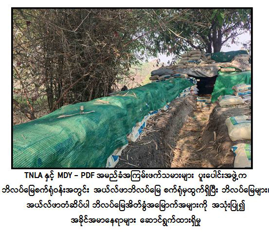 တပ်မတော်စစ်ကြောင်းများအနေဖြင့် မတ္တရာနှင့် သပိတ်ကျင်းမြို့နယ်အကြား TNLA နှင့် MDY - PDF အမည်ခံအကြမ်းဖက်သမားများ ပူးပေါင်းအဖွဲ့များ ကျန်ရှိနေသေးသည့် နေရာများအား ဆက်လက်နယ်မြေရှင်းလင်းသွားမည်ဖြစ်ကြောင်း သိရှိရပြီး နယ်မြေရှင်းလင်းခြင်းနှင့်အတူ နိုင်ငံတော်နှင့် ပုဂ္ဂလိကပိုင် အဖိုးတန်သတ္တုတွင်းထွက်ပစ္စည်းများ ထွက်ရှိရာနေရာများ၊ စက်ရုံ၊ အလုပ်ရုံများတို့ကိုလည်း ထိခိုက်ပျက်စီးဆုံးရှုံးမှုအနည်းဆုံးဖြစ်စေရေး ဆက်လက်ဆောင်ရွက်သွားမည်ဖြစ်ကြောင်း သတင်းရရှိသည်။