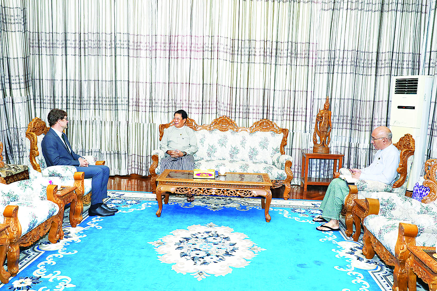 နိုင်ငံခြားရေးဝန်ကြီးဌာန ပြည်ထောင်စုဝန်ကြီး ဦးသန်းဆွေသည် အပြည်ပြည်ဆိုင်ရာ ကြက်ခြေနီကော်မတီ (ICRC) ၏ မြန်မာနိုင်ငံဆိုင်ရာဌာနေကိုယ်စားလှယ် Mr. Arnaud de Baecque အား ယနေ့နံနက် ၁၀ နာရီခွဲတွင် နေပြည်တော်ရှိ နိုင်ငံခြားရေးဝန်ကြီးဌာန၌ လက်ခံတွေ့ဆုံသည်။