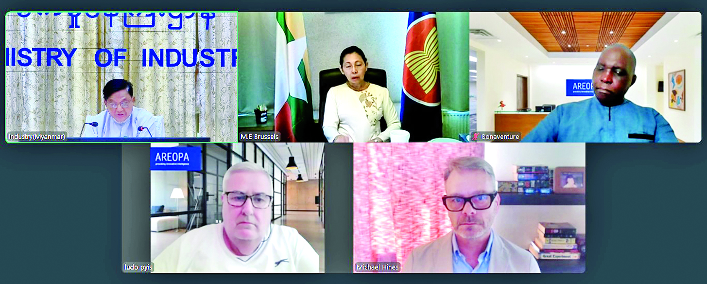 စက်မှုဝန်ကြီးဌာန ပြည်ထောင်စုဝန်ကြီး ဒေါက်တာချာလီသန်းသည် ယနေ့မွန်းလွဲပိုင်းတွင် ဘယ်လ်ဂျီယံနိုင်ငံ ဘရပ်ဆဲလ်မြို့အခြေစိုက် AREOPA စီမံခန့်ခွဲမှုအကြံပေးကုမ္ပဏီ၏ ဒုတိယအမှုဆောင်ချုပ် ဒေါက်တာ ဘိုနဗန်ချားနှင့် တာဝန်ရှိသူများအား စက်မှုဝန်ကြီးဌာန ရုံးအမှတ် (၃၀) အစည်းအဝေးခန်းမ၌ Virtual စနစ်ဖြင့် လက်ခံတွေ့ဆုံသည်။