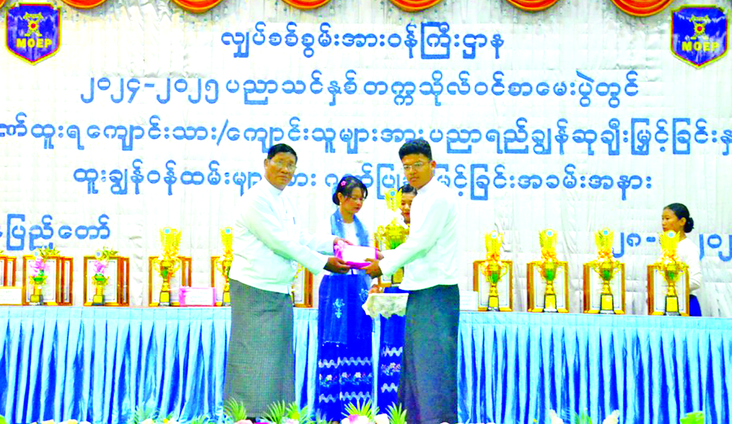 ထို့နောက် ပြည်ထောင်စုဝန်ကြီးနှင့် ဇနီးနှင့် တာဝန်ရှိသူများက ၂၀၂၄-၂၀၂၅ ပညာသင်နှစ် တက္ကသိုလ်ဝင်စာမေးပွဲတွင် ခြောက်ဘာသာဂုဏ်ထူး၊ ငါးဘာသာဂုဏ်ထူး၊ လေးဘာသာဂုဏ်ထူးဖြင့် ထူးချွန်စွာအောင်မြင်ခဲ့သူများနှင့် ထူးချွန်ဆုရဝန်ထမ်းများကို ဂုဏ်ပြုငွေ၊ ဂုဏ်ပြုမှတ်တမ်းလွှာနှင့် ဂုဏ်ပြုတံဆိပ်များ ပေးအပ်ချီးမြှင့်ကြပြီး ဂုဏ်ထူးရ ကျောင်းသား ကျောင်းသူများကိုယ်စား ခြောက်ဘာသာဂုဏ်ထူးရှင်တစ်ဦးက ကျေးဇူးတင်စကားပြန်လည်ပြောကြားသည်။