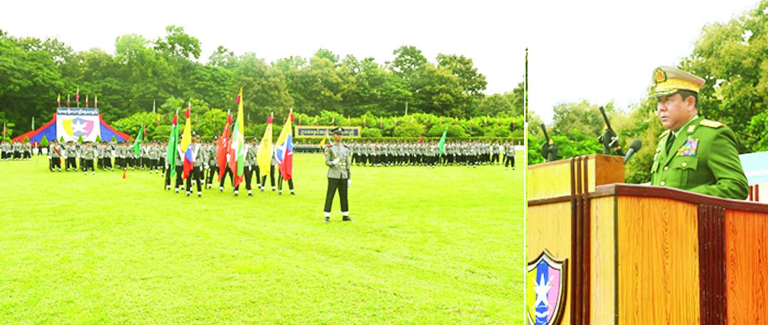 နိုင်ငံတော်မှလည်း တိုင်းပြည်နှင့် လူမျိုးအတွက် စွန့်လွှတ်စွန့်စားတာဝန်ထမ်းရွက်ခဲ့ကြသည့်တပ်ဖွဲ့ဝင်များကို ထိုက်တန်သည့် ဂုဏ်ပြုမှုများချီးမြှင့်ပေးလျက်ရှိရာ မိမိတို့တပ်ဖွဲ့ဝင်များအနေဖြင့် ပြည်သူကို အလုပ်အကျွေးပြုသည့်၊ နိုင်ငံတော်၏ လွတ်လပ်ရေးနှင့်အချုပ်အခြာအာဏာတည်မြဲရေးကို အသက်ပေးကာကွယ်စောင့်ရှောက်တတ်သည့် ရဲတပ်ဖွဲ့ဝင်များအဖြစ် လေးနက်စွာခံယူပြီး ကျရာတာဝန်များကို ဦးလည်မသုန်ထမ်းရွက်သွားကြရန်မှာကြားလိုကြောင်း၊ “မြန်မာနိုင်ငံရဲတပ်ဖွဲ့၏ အမြင့်ဆုံးဂုဏ်သိက္ခာသည် ပြည်သူလူထုက အားကိုးယုံကြည်မှုပင်ဖြစ်သည်” ဆိုသည့် ခံယူချက်နှင့်အညီ ပြည်သူကလေးစားပြီး အားကိုးယုံကြည်ရသည့် စွမ်းရည်ရှိသော ရဲတပ်ဖွဲ့ဖြစ်စေရေး ကြိုးပမ်းထမ်းဆောင်သွားကြရန်လိုအပ်ကြောင်း၊ စွမ်းရည်ပြည့်ဝ ထက်မြက်စေရေးအတွက် “လေ့လာ၊ လေ့ကျင့်၊ လိုက်နာ” ဟူသော လေ့ကျင့်ရေးမူဝါဒနှင့်အညီ မိမိကိုယ်ကိုမိမိတည်ဆောက်ကြရမည် ဖြစ်ကြောင်း တိုက်တွန်းပြောကြားသည်။
