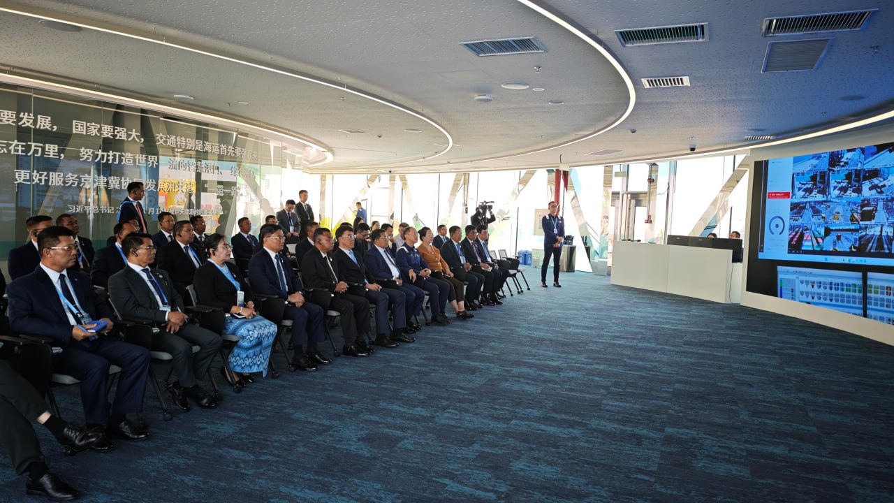 ထို့နောက် ပြည်ထောင်စုသမ္မတမြန်မာနိုင်ငံတော် ယာယီသမ္မတ နိုင်ငံတော်လုံခြုံရေးနှင့် အေးချမ်းသာယာရေးကော်မရှင်ဥက္ကဋ္ဌနှင့် အဖွဲ့ဝင်များသည် ဆိပ်ကမ်းတွင် AI စနစ်ဖြင့် ကွန်တိန်နာများအား သင်္ဘောများပေါ်သို့ တင်ချပြုလုပ်နေမှုနှင့် ဆိပ်ကမ်းအတွင်း လုပ်ငန်းများဆောင်ရွက်နေမှုအခြေအနေများကို ကြည့်ရှုလေ့လာကြသည်။
