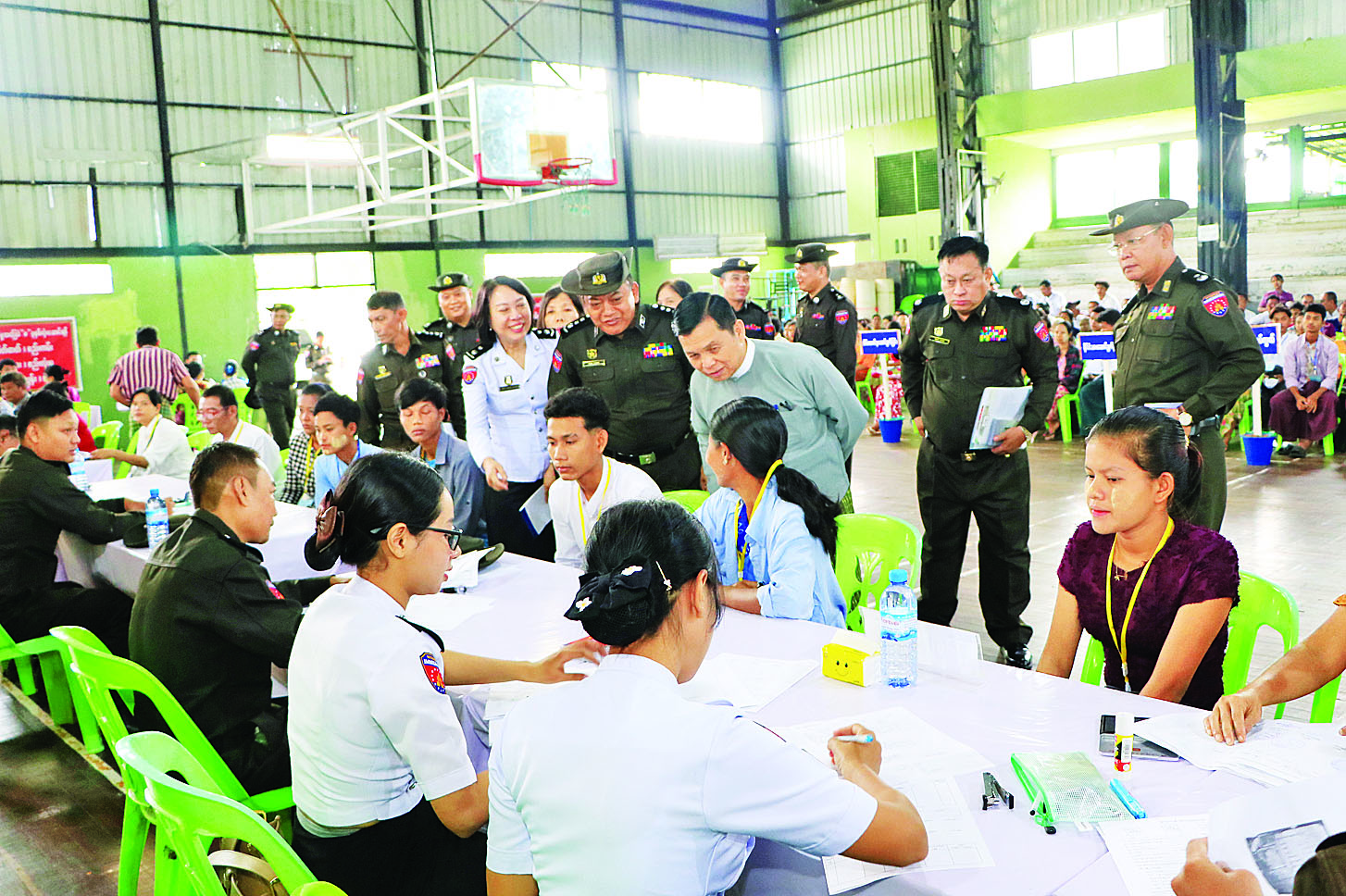 လူဝင်မှုကြီးကြပ်ရေးနှင့် ပြည်သူ့အင်အားဝန်ကြီးဌာန ပြည်ထောင်စုဝန်ကြီး ဦးမြင့်ကြိုင်သည် တာဝန်ရှိသူများနှင့်အတူ ယနေ့နံနက်ပိုင်းက ပဲခူးတိုင်းဒေသကြီး ပဲခူးမြို့ရှိ တိုင်းဒေသကြီးအားကစားခန်းမ၌ ဝန်ထမ်းများက အိမ်ထောင်စု လူဦးရေစာရင်းနှင့် နိုင်ငံသားစိစစ်ရေးကတ် ပျက်စီး/ပျောက်ဆုံးသွားသည့် ဒေသခံပြည်သူများနှင့် နိုင်ငံသားစိစစ်ရေးကတ် မရရှိသေးသူများကို ပန်းခင်းစီမံချက်အဆင့်(၃)ဖြင့် ဆောင်ရွက်ပေးနေမှုကို ကြည့်ရှုအားပေးသည်။