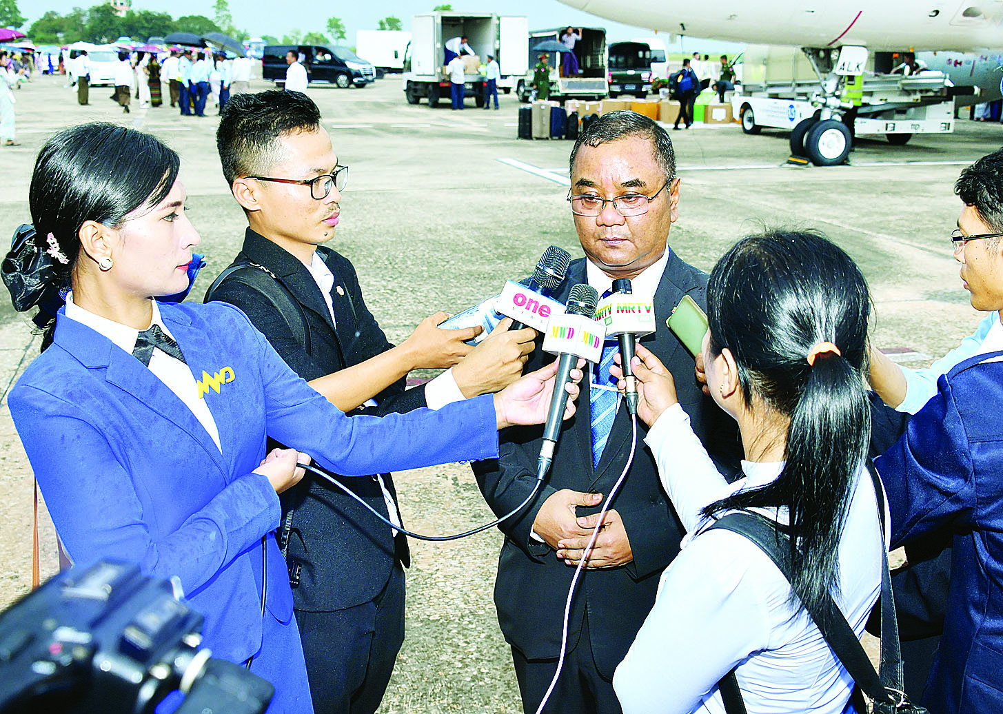 ထိုသို့ ပြန်လည်ရောက်ရှိစဉ် ပြည်ထောင်စုသမ္မတမြန်မာနိုင်ငံတော် ယာယီသမ္မတနိုင်ငံတော်လုံခြုံရေးနှင့်အေးချမ်းသာယာရေးကော်မရှင်ဥက္ကဋ္ဌ ဗိုလ်ချုပ်မှူးကြီး မင်းအောင်လှိုင် တရုတ်နိုင်ငံသို့ အလုပ်သဘောခရီးစဉ်သွားရောက်ခဲ့မှုနှင့်ပတ်သက်၍ အမျိုးသားကာကွယ်ရေးနှင့်လုံခြုံရေးကောင်စီ သတင်းထုတ်ပြန်ရေးအဖွဲ့ခေါင်းဆောင် ဗိုလ်ချုပ် ဇော်မင်းထွန်းက သတင်းမီဒီယာများ၏ မေးမြန်းမှုများကို ယခုလိုပဲ ဖြေကြားခဲ့ပါတယ် -