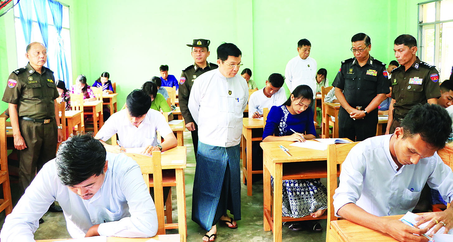 လက်ထောက်လူဝင်မှုကြီးကြပ်ရေးမှူးရာထူးအတွက် တိုင်းဒေသကြီး/ ပြည်နယ်များရှိ သတ်မှတ်နေရာအသီးသီး၌ အင်္ဂလိပ်စာရေးဖြေစာမေးပွဲများ တစ်ပြိုင်တည်းကျင်းပပြီး ပြည်ထောင်စုနယ်မြေ (နေပြည်တော်) တွင် စာမေးပွဲကို ဇမ္ဗူသီရိမြို့နယ် အမှတ် (၅) အခြေခံပညာအထက်တန်းကျောင်း၌ ကျင်းပရာ လူဝင်မှုကြီးကြပ်ရေးနှင့်ပြည်သူ့အင်အားဝန်ကြီးဌာန ပြည်ထောင်စုဝန်ကြီး ဦးမြင့်ကြိုင်၊ ဒုတိယဝန်ကြီး ဦးဌေးလှိုင်နှင့် တာဝန်ရှိသူများသည် ယနေ့နံနက်ပိုင်းက အဆိုပါစာမေးပွဲ ကျင်းပရာသို့ သွားရောက်ကြည့်ရှုအားပေးသည်။