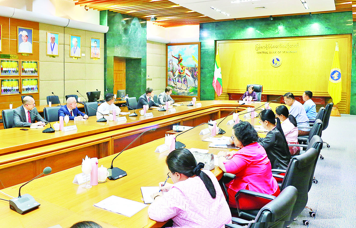 မြန်မာနိုင်ငံတော်ဗဟိုဘဏ်ဥက္ကဋ္ဌ ဒေါ်သန်းသန်းဆွေသည် ရုရှားဖက်ဒရေးရှင်းနိုင်ငံ PJSC “Sberbank of Russia” ကုမ္ပဏီ၏ ဒုတိယဥက္ကဋ္ဌ Mr. Ivan NOSOV ဦးဆောင်သည့် ကိုယ်စားလှယ်အဖွဲ့အား ယနေ့တွင် နေပြည်တော်ရှိ မြန်မာနိုင်ငံတော်ဗဟိုဘဏ် အစည်းအဝေးခန်းမ၌ လက်ခံတွေ့ဆုံသည်။