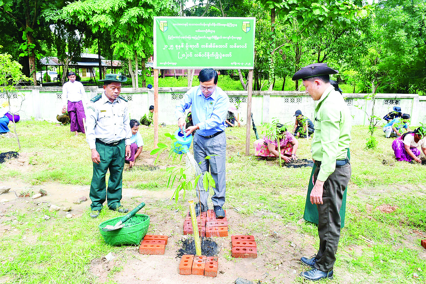 ဦးစွာ နေပြည်တော်ကောင်စီဥက္ကဋ္ဌက သတ်မှတ်နေရာ၌ မဟော်ဂနီပင်ကို စတင်စိုက်ပျိုးပေးပြီး (အောက်ဝဲပုံ) တက်ရောက်လာသူများက သတ်မှတ်နေရာများ၌ မဟော်ဂနီ၊ ပျဉ်းကတိုး၊ ရေတမာ၊ ခရေ စသည့် ပျိုးပင်များအား အမျိုးသားရေးလှုပ်ရှားမှုအသွင်ဖြင့် စုပေါင်းစိုက်ပျိုးနေမှုကို လှည့်လည်ကြည့်ရှုအားပေးသည်။