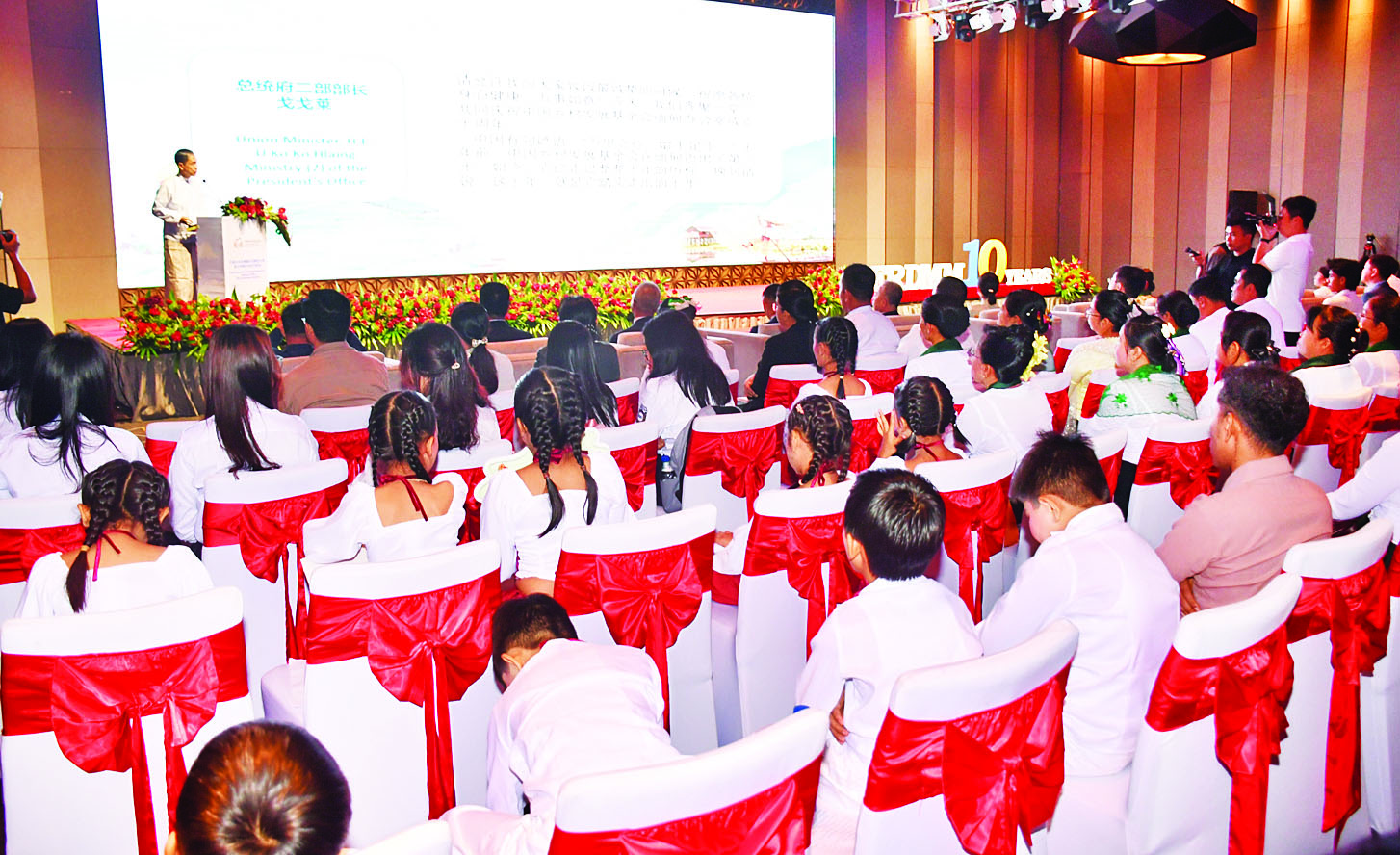 အခမ်းအနားတွင် ပြည်ထောင်စုဝန်ကြီး ဦးကိုကိုလှိုင်၊ မြန်မာနိုင်ငံဆိုင်ရာ တရုတ်ပြည်သူ့သမ္မတနိုင်ငံသံရုံးယာယီတာဝန်ခံ Ms. Cao Jing နှင့် တရုတ်ပြည်သူ့သမ္မတနိုင်ငံ ကျေးလက်ဒေသ ဖွံ့ဖြိုးတိုးတက်ရေးဖောင်ဒေးရှင်း(CFRD) ဒုတိယဥက္ကဋ္ဌ Mr. Liu Wenkui တို့က အမှာစကားပြောကြားကြပြီး တရုတ်ပြည်သူ့သမ္မတနိုင်ငံ ကျေးလက်ဒေသ ဖွံ့ဖြိုးတိုးတက်ရေးဖောင်ဒေးရှင်း (CFRD) ၏ (၁ဝ)နှစ်မြောက် နှစ်ပတ်လည်ကိတ်အား လှီးဖြတ်ပေးကြသည်။