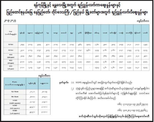 ရန်ကုန်မြို့နှင့် မန္တလေးမြို့အတွက် ရည်ညွှန်းလက်ကားဈေးနှုန်းများနှင့် ပြည်ထောင်စုနယ်မြေ နေပြည်တော်၊ တိုင်းဒေသကြီး/ပြည်နယ် မြို့တော်များအတွက် ရည်ညွှန်းလက်လီဈေးနှုန်းများ 09/20/2025