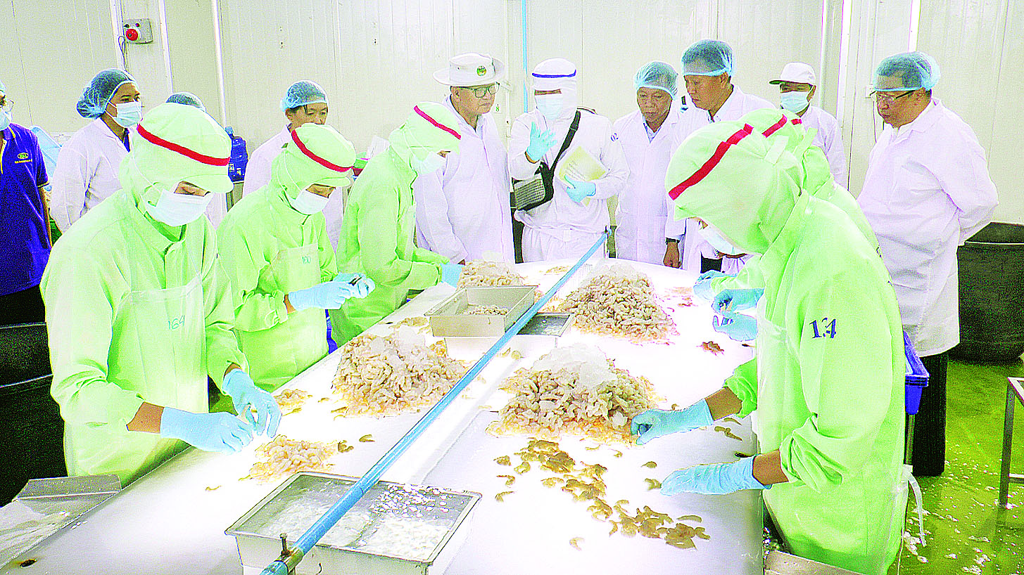 ယင်းနောက် ဒုတိယဝန်ကြီးသည် လှိုင်သာယာ၊ ရွှေလင်ပန်းစက်မှုဇုန်ရှိ Shan International Co.,Ltd. ၏ ငါးအအေးခန်းစက်ရုံတွင် ရေချိုငါးများ ပြုပြင်အေးခဲပြီး UK, USA,UAE နိုင်ငံများသို့တင်ပို့ရန် ဆောင်ရွက်နေမှု၊ Myat Annawar Aung Co.,Ltd. အအေးခန်းစက်ရုံ၏ ငါး၊ ပုစွန်၊ ငါးခြောက်၊ ပုစွန်ခြောက်၊ ငါးဆားနယ် အေးခဲထုတ်လုပ်ပြီး Malaysia, Thailand, Japan, Vietnam နိုင်ငံများသို့တင်ပို့ရန် ဆောင်ရွက်နေမှုများကို ကြည့်ရှုစစ်ဆေးပြီး ထုတ်လုပ်မှုအဆင့်တိုင်းတွင် အစားအစာဘေးကင်းလုံခြုံရေး၊ နိုင်ငံတကာစံချိန်စံညွှန်းများနှင့်အညီ ထုတ်လုပ်နိုင်ရေး၊ ထုတ်ကုန်များ၏ အရည်အသွေးနှင့်ဘေးကင်းမှုအပေါ် ယုံကြည်စိတ်ချရမှုရှိစေရန် လုပ်ငန်းအဆင့်တိုင်းတွင် အရည်အချင်းပြည့်မီပြီး ကျွမ်းကျင်ဝန်ထမ်းများ လုံလောက်စွာအသုံးပြုရန် ဆွေးနွေးမှာကြားခဲ့ကြောင်း သိရသည်။