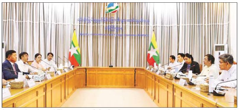 Yunnan Baoshan Hengyi Industrial Group Co.,Ltd ဥက္ကဋ္ဌနှင့်တွေ့ဆုံစဉ် မြန်မာနိုင်ငံတွင် စွမ်းအင်လုပ်ငန်း၊ နိုင်ငံတကာကုန်ထုတ်လုပ်မှုနှင့် ထောက်ပံ့ပို့ဆောင်ရေးလုပ်ငန်း၊ ယဉ်ကျေးမှု၊ ခရီးသွားလာရေးနှင့် ကျန်းမာရေးစောင့်ရှောက်မှုလုပ်ငန်း၊ စိုက်ပျိုးရေးနှင့် ရေရရှိရေးလုပ်ငန်း၊ ထောက်ပံ့ရေးကွင်းဆက်နှင့် E-commerce လုပ်ငန်းများတွင် ရင်းနှီးမြှုပ်နှံမှုဆောင်ရွက်နိုင်ရေး ဆိုင်ရာကိစ္စရပ်များနှင့်စပ်လျဉ်း၍ အပြန်အလှန်ဆွေးနွေးကြသည်။
