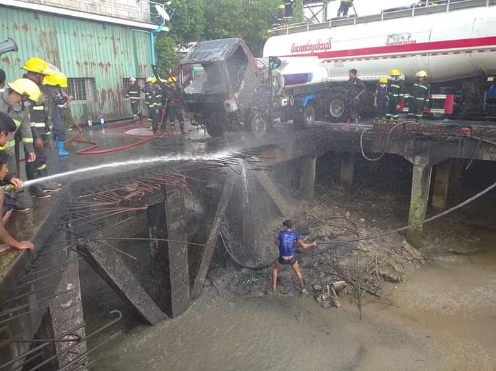 အင်းစိန်မြို့နယ်၌ ဆီဘောက်ဆာယာဉ်ပေါ်သို့ ဆီလှယ်ရာမှ မီးလောင်မှု ဖြစ်ပွား