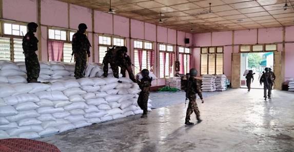 လုံခြုံရေးတပ်ဖွဲ့ဝင်များက ကျောက်မဲမြို့ အမှတ်(၁)အခြေခံပညာအထက်တန်းကျောင်း၌ သန့်ရှင်းရေးလုပ်ငန်းများဆောင်ရွက်၊ ဒေသခံတိုင်းရင်းသားပြည်သူများအတွက် ဆန်၊ ဆီနှင့် စားသောက်ကုန်များ ထပ်မံရောက်ရှိ