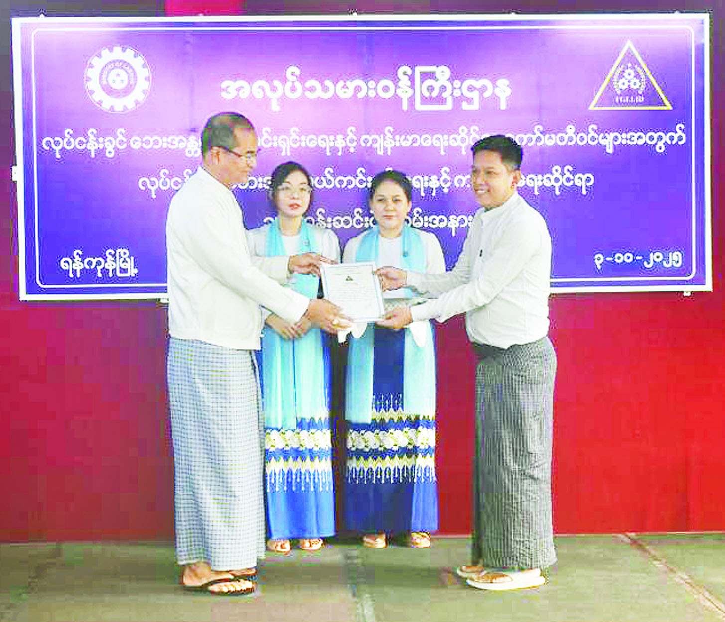 သင်တန်းဆင်းပွဲတွင် အလုပ်သမားဝန်ကြီးဌာန ဒုတိယဝန်ကြီးဦးဝင်းရှိန်က ကုန်ထုတ်စွမ်းအား တိုးတက်ရေးကို အထောက်အပံ့ဖြစ်စေသည့် လုပ်ငန်းခွင်ဘေးအန္တရာယ်ကင်းရှင်းရေး၊ လုပ်ငန်းခွင် မတော်တဆထိခိုက်မှုနှင့် လုပ်ငန်းခွင်ရောဂါရရှိ ခံစားမှုလျော့နည်းကျဆင်းရန် အစိုးရ၊ အလုပ်ရှင်၊ အလုပ်သမား သုံးပွင့်ဆိုင်ပူးပေါင်းဆောင်ရွက်သွားရန် လိုအပ်ကြောင်း၊ ကျန်းမာရေးဆိုင်ရာကော်မတီဝင်များအနေဖြင့် လုပ်ငန်းခွင်၌ အလင်းရောင်၊ အပူချိန်၊ အသံ၊ အခိုးအငွေ့များနှင့်စပ်လျဉ်း၍ လုပ်ငန်းခွင်ဘေးအန္တရာယ်များ မဖြစ်ပေါ်စေရေး၊ ကျန်းမာရေးကောင်းမွန်ပြီး သန့်ရှင်းသပ်ရပ်သည့် လုပ်ငန်းခွင်များကို ဖော်ဆောင်နိုင်ရေး ကြီးကြပ်ဆောင်ရွက်ပေးရန်လိုအပ်ကြောင်းပြောကြားပြီး သင်တန်းသားများအား သင်တန်းပြီးမြောက်ကြောင်း လက်မှတ်များပေးအပ်သည်။