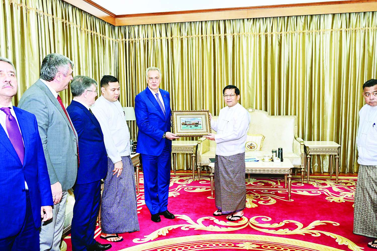 ပြည်ထောင်စုသမ္မတမြန်မာနိုင်ငံတော် ယာယီသမ္မတ နိုင်ငံတော်လုံခြုံရေးနှင့် အေးချမ်းသာယာရေးကော်မရှင်ဥက္ကဋ္ဌ ဗိုလ်ချုပ်မှူးကြီးမင်းအောင်လှိုင်ထံသို့ ရုရှားဖက်ဒရေးရှင်းနိုင်ငံ၊ စိန့်ပီတာစဘတ်မြို့အစိုးရအဖွဲ့ဝင်၊ ပြည်ပဆက်ဆံရေးကော်မတီဥက္ကဋ္ဌ ဦးဆောင်သောကိုယ်စားလှယ်အဖွဲ့က လာရောက်ဂါရဝပြုတွေ့ဆုံ