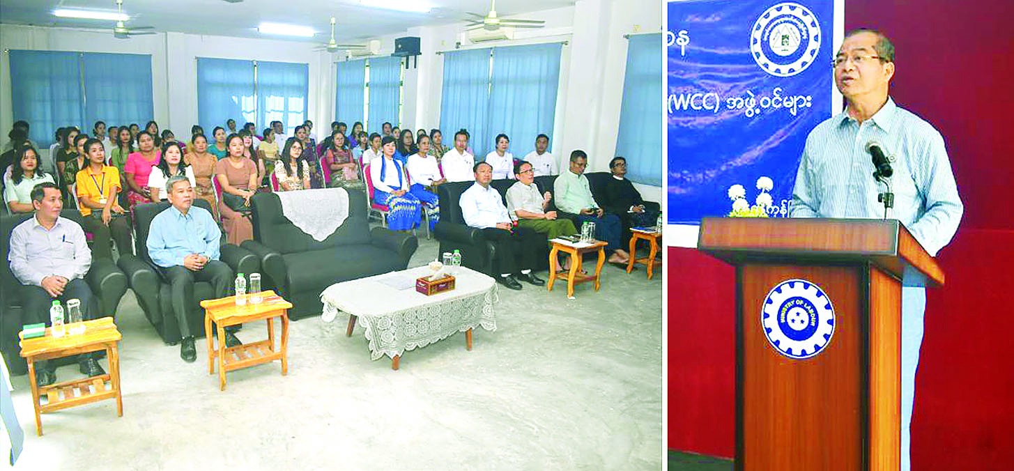 ဦးစွာ ဒုတိယဝန်ကြီးက WCC အဖွဲ့ဝင်များအနေဖြင့် အလုပ်သမားရေးရာဥပဒေပါ အကျိုးခံစားခွင့်များ၊ ကျန်းမာရေးစောင့်ရှောက်မှုများ၊ ဘေးအန္တရာယ်ကင်းရှင်းရေးဆိုင်ရာ အစီအမံများစသည့် ဥပဒေပါလိုက်နာရမည့်အချက်များနှင့် ရှောင်ကြဉ်ရမည့်အချက်များကို သိရှိလိုက်နာခြင်းအားဖြင့် လုပ်ငန်းခွင်အေးချမ်းသာယာပြီး ကုန်ထုတ်စွမ်းအားမြင့်မားစေမည်ဖြစ်ကြောင်း၊ အလုပ်သမားရေးရာ လုပ်ငန်းညှိနှိုင်းရေးကော်မတီ (WCC) အဖွဲ့ဝင်များအနေဖြင့် လုပ်ငန်းခွင်တည်ငြိမ်အေးချမ်းရေးနှင့် ကုန်ထုတ်စွမ်းအား တိုးတက်ရေးအတွက်များစွာ အထောက်အကူဖြစ်မည်ဟု ယုံကြည်ကြောင်း၊ အလုပ်သမားများ၏ အကျိုးခံစားပိုင်ခွင့်များကို အလုပ်သမားဥပဒေနှင့်အညီ မရရှိပါက အလုပ်ရှင်၊ စီမံအုပ်ချုပ်သူများနှင့် WCC တို့ ညှိနှိုင်းဆွေးနွေး အဖြေရှာခြင်း၊ ပြေလည်မှုမရပါက သက်ဆိုင်ရာ အလုပ်သမားဌာနများသို့ ဆက်သွယ်ဆောင်ရွက်ရန်လိုကြောင်း၊ လုပ်ငန်းခွင်အတွင်း ထိခိုက်စေမည့် လုပ်ဆောင်မှုများ ရှောင်ကြဉ်ပြီး လုပ်ငန်းခွင်အငြင်းပွားမှုကို ဥပဒေနှင့်အညီလုပ်ငန်းခွင်မပျက် ဖြေရှင်းဆောင်ရွက်ကြရန် မှာကြားသည်။