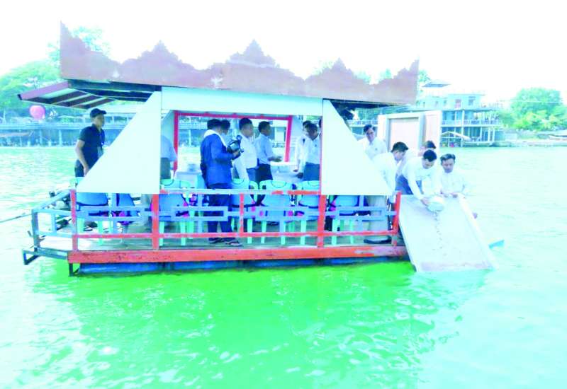 ယင်းနောက် ဒုတိယဝန်ကြီး ဒေါက်တာ အောင်ကြီးသည် မွေးမြူရေးသုတေသနဦးစီးဌာနသို့ သွားရောက်ပြီး ပေ (၄၀ x ၃၀) ရှိ သရုပ်ပြငါးသားဖောက်စခန်း တည်ဆောက်ပြီးစီးမှုနှင့် ဆက်လက်ဆောင်ရွက်မည့်လုပ်ငန်းများကို ကြည့်ရှုစစ်ဆေးပြီး လုပ်ငန်းများ သတ်မှတ်ကာလ အတွင်းပြီးစီးရေး၊ စံချိန်စံညွှန်း ပြည့်မီရေးနှင့် လုပ်ငန်းခွင်အန္တရာယ်ကင်းရှင်းရေး ဆွေးနွေးမှာကြားသည်။