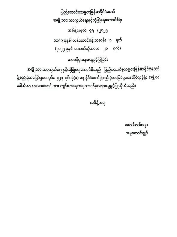 ဝန်ကြီးဌာန ကြေညာချက်များ