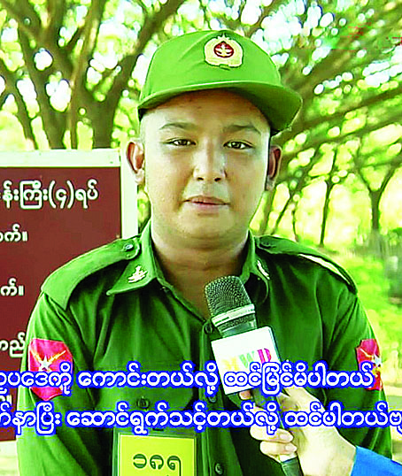 ယနေ့တွင် ဖွင့်လှစ်လိုက်သည့် ပြည်သူ့စစ်မှုထမ်းသင်တန်းအမှတ်စဉ်(၁၈)မှ နိုင်ငံ့သားကောင်းလူငယ်များအဖြစ် နိုင်ငံတော်ကာကွယ်ရေးနှင့်လုံခြုံရေးတာဝန်များကို ဂုဏ်ယူစွာထမ်းဆောင်ရန် သင်တန်းတက်ရောက်ကြမည့် သင်တန်းသားများ၏စကားသံများကိုလည်း ယခုလိုပဲ ကြားသိရပါသည်-