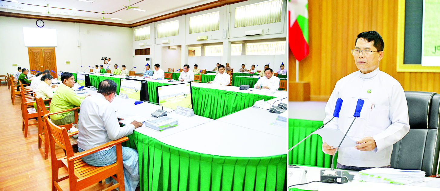 ယနေ့အစည်းအဝေးတွင် မြေလွတ်၊မြေလပ်နှင့်မြေရိုင်းလုပ်ကိုင်ခွင့်ရရှိထားပြီး စိုက်ပျိုးလုပ်ကိုင်မှု တည်ငြိမ်နေသည့်မြေများအား လယ်ယာမြေဥပဒေ၊ နည်းဥပဒေများအရ လယ်ယာမြေအဖြစ်သတ်မှတ်ပေးရန် လျှောက်ထားလာသောလုပ်ငန်းများ၊ နိုင်ငံတော်စီမံကိန်းများဆောင်ရွက်ရာတွင် နစ်နာကြေး၊ လျော်ကြေးပေးချေရန်ကိစ္စရပ်များ၊ လယ်ယာမြေကို ခွင့်ပြုချက်မရရှိဘဲ အခြားနည်းဖြင့် အသုံးပြုခြင်းများကို ဖြေရှင်းနိုင်ရန်နှင့် နောင်ထပ်မံမဖြစ်ပွားစေရေးအတွက် ထိန်းချုပ်နိုင်ရန်ဆောင်ရွက်မည့် စံပြုလုပ်ထုံးလုပ်နည်းများနှင့်အညီတင်ပြလာသည့် လုပ်ငန်းများအပေါ်  ဆွေးနွေးဆောင်ရွက်ခဲ့ကြကြောင်း သိရသည်။