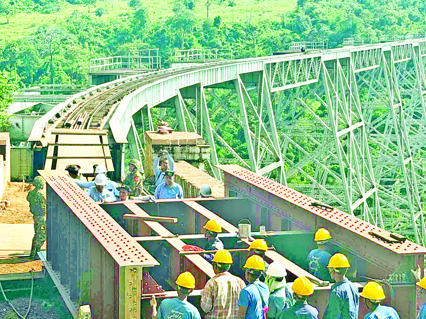 ဒုတိယဝန်ကြီး ဦးအောင်မြိုင် နေပြည်တော် - မန္တလေး ရထားလမ်းပိုင်း ပြုပြင်ဆောင်ရွက်နေမှုနှင့် ဂုတ်ထိပ်တံတားပြုပြင်နေမှု ကြည့်ရှုစစ်ဆေး