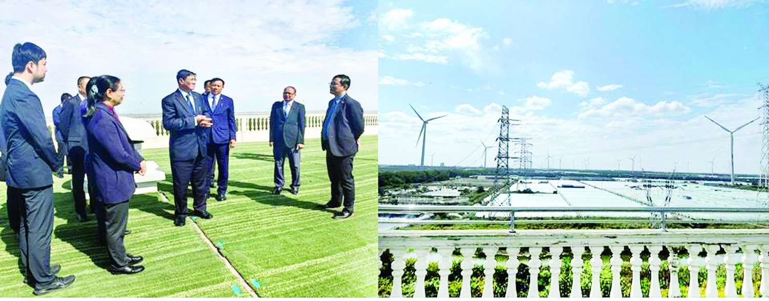 တရုတ်ပြည်သူ့သမ္မတနိုင်ငံ စူးကျိုးမြို့သို့ရောက်ရှိနေသော လျှပ်စစ်စွမ်းအားဝန်ကြီးဌာန ပြည်ထောင်စုဝန်ကြီး ဦးဉာဏ်ထွန်းဦးဆောင်သော မြန်မာကိုယ်စားလှယ်အဖွဲ့သည် ယမန်နေ့က ကျန်းစုပြည်နယ် ရုဒုံမြို့ ဟွန်ကျန်းပင်လယ်ကွေ့အပြင်ဘက်ရှိ ဒီရေတောကမ်းခြေတွင် China Longyuan Power Group Corporation Limited မှ တည်ဆောက်ထား သော ကုန်းတွင်း၊ ဒီရေတောနှင့် ကမ်းလွန်တို့တွင် တပ်ဆင်အင်အား ၄၈၀ မဂ္ဂါဝပ်ရှိသည့် Ru Dong Huan Gang Offshore Wind Farm ကမ်းလွန်လေအားလျှပ်စစ်စက်ရုံသို့ သွားရောက်လေ့လာကြသည်။
