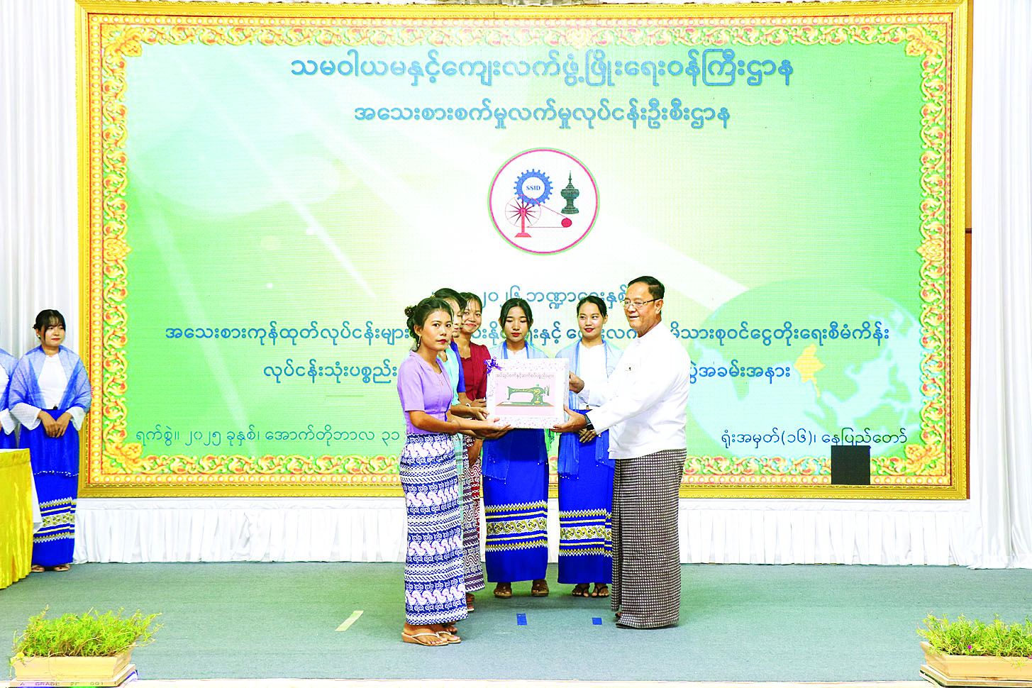 သမဝါယမနှင့်ကျေးလက်ဖွံ့ဖြိုး ရေးဝန်ကြီးဌာန၊   အသေးစားစက်မှု လက်မှုလုပ်ငန်းဦးစီးဌာနက အကောင်အထည်ဖော် ဆောင်ရွက်လျက်ရှိသည့်  “အသေးစားကုန်ထုတ်လုပ်ငန်းများ ဖန်တီး​ပေးနိုင်ရေးနှင့် ကျေးလက်နေမိသားစုဝင်ငွေတိုး​ရေးစီမံကိန်း” ၏ ၂၀၂၅-၂၀၂၆  ဘဏ္ဍာနှစ် နေပြည်တော် ကောင်စီနယ်မြေအတွင်း ဖွင့်လှစ်ခဲ့သည့်  စက်ချုပ်သင်တန်း၊ မော်တော်ဆိုင်ကယ်ပြုပြင် ထိန်းသိမ်းနည်းပညာသင်တန်း၊ စားသောက်ကုန်နှင့် လူသုံးကုန်ထုတ်လုပ်မှုသင်တန်းများ၏ လုပ်ငန်းသုံးပစ္စည်းများပေးအပ်ပွဲနှင့် သင်တန်းဆင်းလက်မှတ်ပေးအပ်ပွဲကို ယနေ့နံနက်ပိုင်းက အဆိုပါဝန်ကြီးဌာနစုပေါင်းအစည်းအဝေးခန်းမ၌ ကျင်းပသည်။