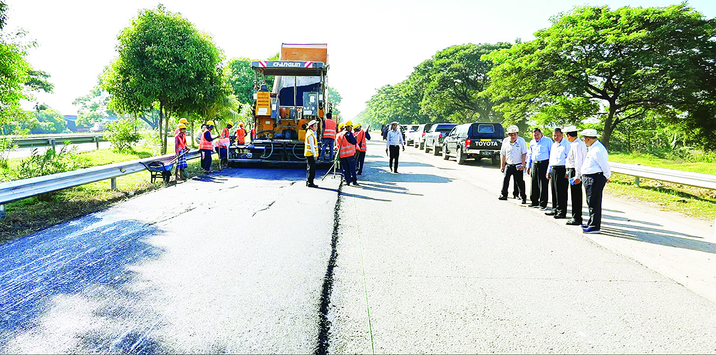 ယင်းနောက် မန္တလေးငလျင်ဒဏ်ကြောင့် ပျက်စီးသွားသော ရန်ကုန် - မန္တလေးအမြန်လမ်း(ရန်ကုန် - နေပြည်တော်လမ်းပိုင်း) မိုင်တိုင် ၁၁၃/၃ မှ ၁၁၃ /၅ အတွင်း ကတ္တရာကွန်ကရစ်ထပ်ပိုးလွှာခင်းခြင်းလုပ်ငန်းဆောင်ရွက်နေမှုနှင့် အမြန်လမ်းမကြီးတစ်လျှောက်လုပ်ငန်းဆောင်ရွက်နေမှုအခြေအနေများကို  ကြည့်ရှုစစ်ဆေးခဲ့ကြောင်း သတင်းရရှိသည်။