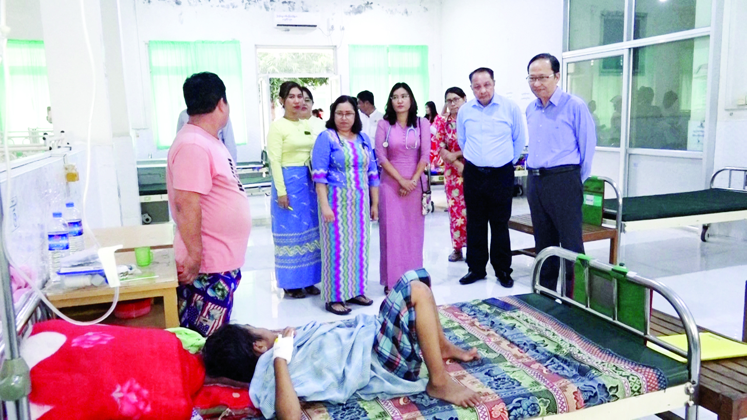 ဆက်လက်၍ ပြည်ထောင်စုဝန်ကြီးနှင့်အဖွဲ့သည် သားဖွားမီးယပ်ရောဂါအထူးကုဆေးရုံကြီး-နေပြည်တော်သို့ ရောက်ရှိပြီး ပြင်ပလူနာဌာန၊ သားဖွားဆောင်၊ မီးယပ်ဆောင်၊ ခွဲစိတ်ခန်းများနှင့်မွေးကင်းစ ကလေးကုသဆောင်တို့တွင် လူနာများလက်ခံကုသမှုအခြေအနေ၊  ခွဲစိတ်ကုသမှုများဆောင်ရွက်မှုအခြေ အနေနှင့်မွေးကင်းစကလေးများ အထူးကြပ်မတ်ကုသမှုအခြေအနေများ ကြည့်ရှု၍လူနာများ၊ လူနာ မိသားစုများ၊ အထူးကုဆရာဝန်ကြီးများ၊ သူနာပြုများနှင့်ကျန်းမာရေးဝန်ထမ်းများအား တွေ့ဆုံအားပေး စကားပြောကြားခဲ့ကာ ကျန်ရှိသောပျက်စီးအဆောက်အအုံများအားပြင်ဆင်မှု အမြန်ပြီးစီးရေး၊ ပြင်ဆင် သည့်အဆောက်အအုံများ အရည်အသွေးကောင်းမွန်စေရေးနှင့် ကုသရေးလုပ်ငန်းများနှင့်ပတ်သက်၍ လိုအပ်သည်များ မှာကြားခဲ့ကြောင်းသိရသည်။