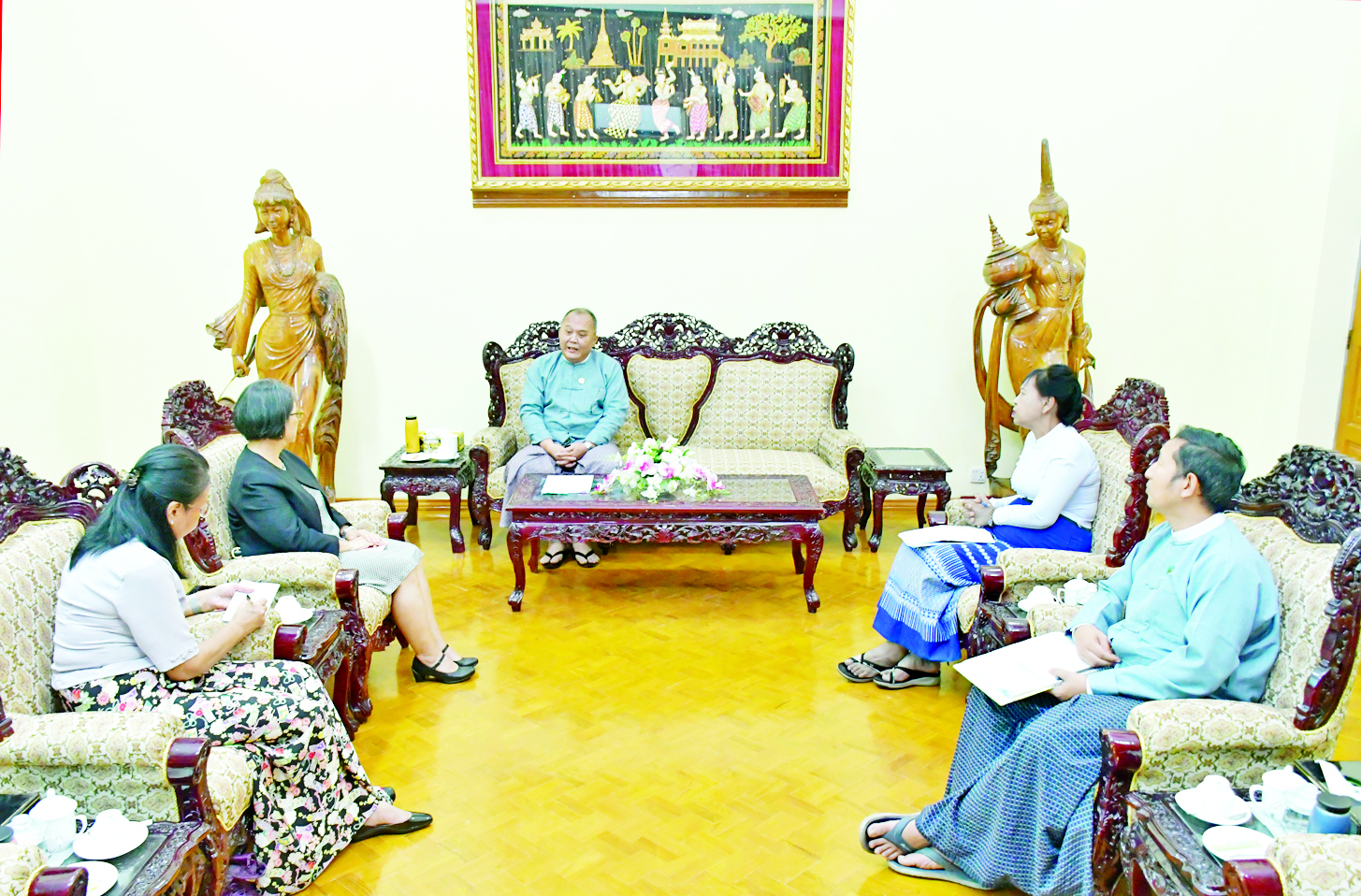 လူမှုဝန်ထမ်း၊ ကယ်ဆယ်ရေးနှင့် ပြန်လည်နေရာချထားရေးဝန်ကြီးဌာန ဒုတိယဝန်ကြီး ဒေါက်တာ သန်းစိုးသည် ကုလသမဂ္ဂဒုက္ခသည်များဆိုင်ရာ မဟာမင်းကြီးရုံး (UNHCR)၏ မြန်မာနိုင်ငံဆိုင်ရာ ဌာနေကိုယ်စားလှယ် Ms. Noriko Takagi ဦးဆောင်သောအဖွဲ့အား ယနေ့ မွန်းလွဲ ၂ နာရီတွင် အဆိုပါဝန်ကြီးဌာန ဧည့်ခန်းမ၌ လက်ခံတွေ့ဆုံသည်။