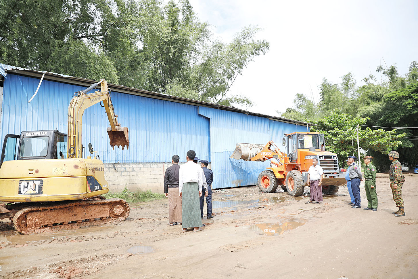 ထိုသို့ ဖျက်ဆီးရှင်းလင်းခြင်းလုပ်ငန်းများ ဆောင်ရွက်ရာတွင် လုံခြုံရေးအဖွဲ့နှင့် ဖယ်ရှားရှင်းလင်းရေးအဖွဲ့ဝင်များသည် ယနေ့နံနက်ပိုင်းတွင် စက်၊ ယာဉ်၊ ယန္တရားများနှင့်အတူ မြဝတီမြို့ အမှတ် (၅) ရပ်ကွက်ရှိ ၃၅ ဂိတ် ဒေသအခေါ် အောင်ပါဝါဂိတ်-၂ ကို သွားရောက်စစ်ဆေးပြီး အလျားပေ ၁၂၀၊ အနံပေ ၆၀၊ အမြင့် ၂၅ ပေရှိ သံဖရိန်၊ အုတ်တက်၊ သွပ်မိုးသွပ်ကာ ပစ္စည်းသိုလှောင်ရုံအား ဖယ်ရှားရှင်းလင်းခြင်းလုပ်ငန်းကို ဆောင်ရွက်ကြသည်။