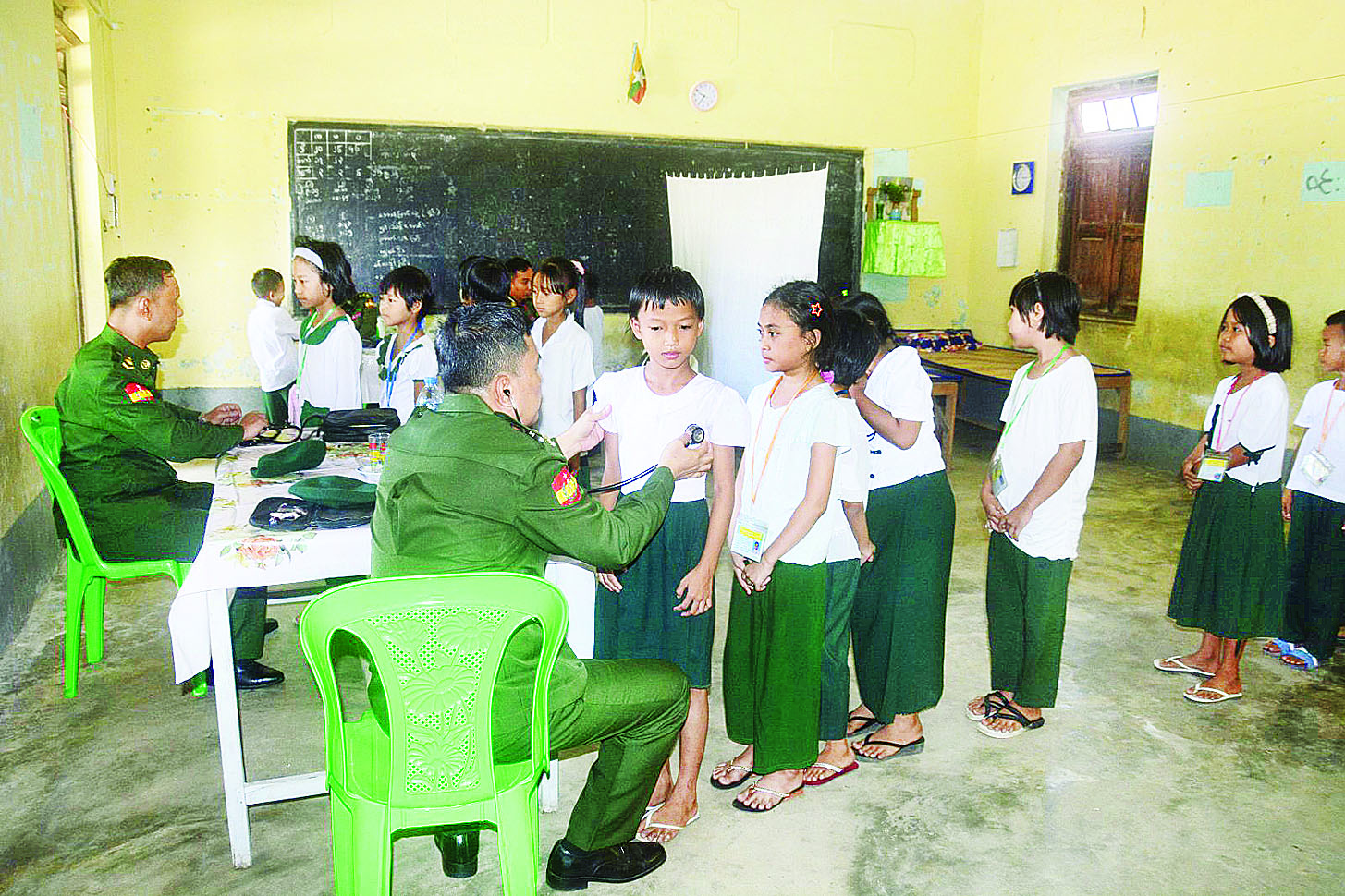 ဦးစွာ တပ်မတော်နယ်လှည့်အထူးကုဆေးအဖွဲ့မှ ကလေးရောဂါကုပါရဂူက တစ်သက်တာကျန်းမာရေ၊ တစ်ကိုယ်ရေးကျန်းမာရေးနှင့်ပတ်သက်၍ သိသင့်သိထိုက်သည်များကို ဟောပြောဆွေးနွေးပေးသည်။ ထို့နောက် တပ်မတော်နယ်လှည့်ဆေးကုသရေးအဖွဲ့က ကျောင်းသား/ကျောင်းသူ ၁၅၀ ဦးတို့ကို ကျောင်းကျန်းမာရေးစစ်ဆေးပေးခြင်းများ ဆောင်ရွက်ပေးကြသည်။ ထို့ပြင် တာဝန်ရှိသူများက ဟိုင်းကြီးကျွန်းမြို့ရှိ အခြေခံပညာအထက်တန်းကျောင်းအတွက် အလှူငွေများ၊ ကျောင်းသား/ ကျောင်းသူများအတွက် သံချဆေးနှင့် အားဆေးများကို ပေးအပ်လှူဒါန်းခဲ့ကြောင်း သတင်းရရှိသည်။