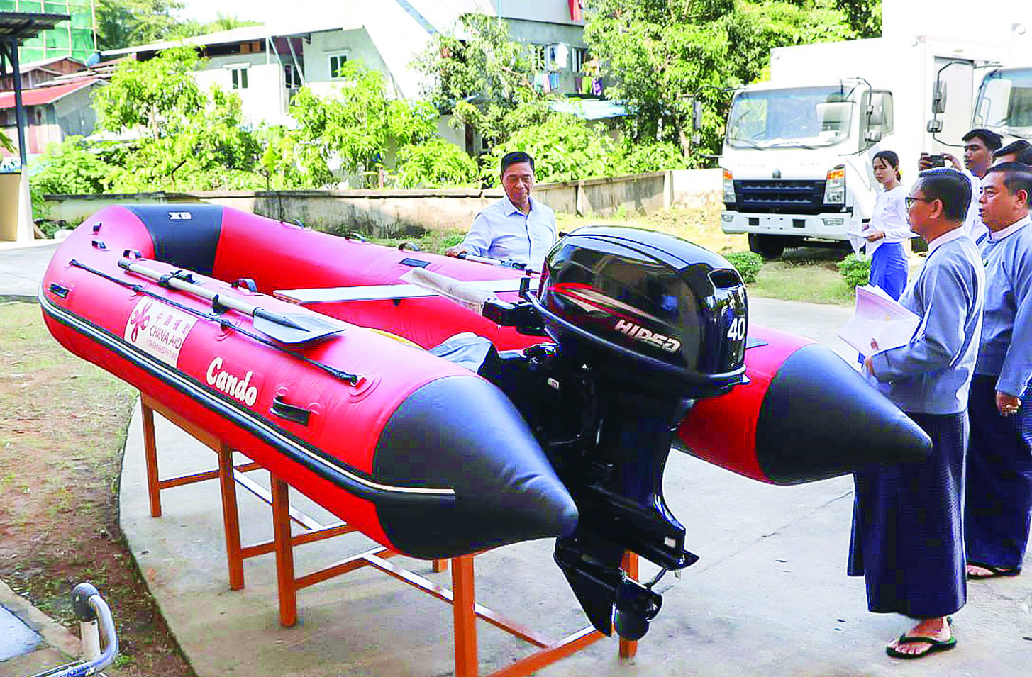 ဆက်လက်၍ ပြည်ထောင်စုဝန်ကြီးနှင့်အဖွဲ့သည် ရန်ကုန်တိုင်းဒေသကြီး မရမ်းကုန်းမြို့နယ် ကျိုက်ဝိုင်း ဘုရားလမ်းရှိ ဘေးအန္တရာယ်ဆိုင်ရာ စီမံခန့်ခွဲမှုဦးစီး ဌာန ဗဟိုသိုလှောင်ရုံ (ရန်ကုန်မြို့)သို့ သွားရောက်၍ တရုတ်ပြည်သူ့သမ္မတနိုင်ငံက လှူဒါန်းသည့် ရေသန့်စင်စက်တင်ယာဉ်များ၊ အသက်ကယ် ရော်ဘာလှေ၊ အသက်ကယ်ရော်ဘာဘောကွင်း အစရှိသည့် ရေဘေးအန္တရာယ် တုံ့ပြန်ရေးဆိုင်ရာ ပစ္စည်းများ ရောက်ရှိသိုလှောင်ထားရှိမှုနှင့် ပစ္စည်းအမျိုးအစားအလိုက် ခင်းကျင်းပြသထားမှုများကို ကြည့်ရှုစစ်ဆေးကာ ဖြန့်ခွဲသိုလှောင်ထိန်းသိမ်း ထားရှိမည့် အစီအမံအပေါ် လိုအပ်သည်များ ညှိနှိုင်း ဆောင်ရွက်ပေးသည်။
