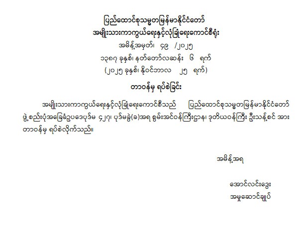 ဝန်ကြီးဌာန ကြေညာချက်များ